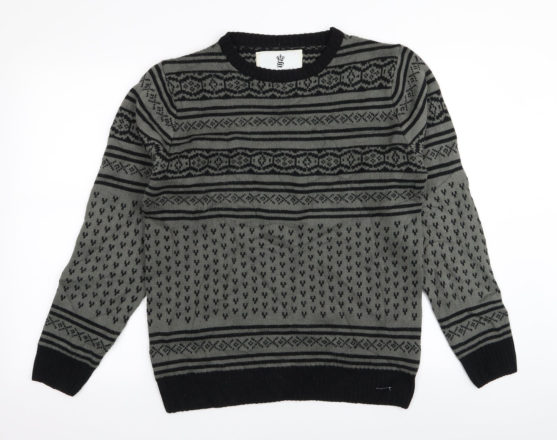Soul Star Mens Green Geometric Pullover Jumper Size XL