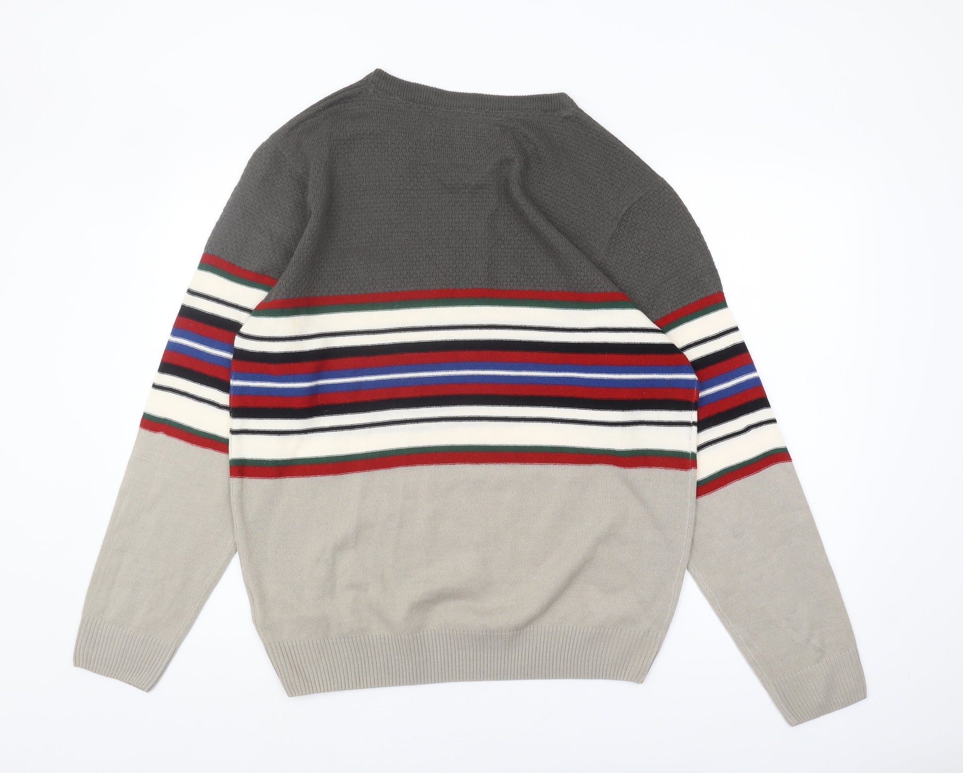 Soul Star Men's XL Grey Striped Pullover Jumper