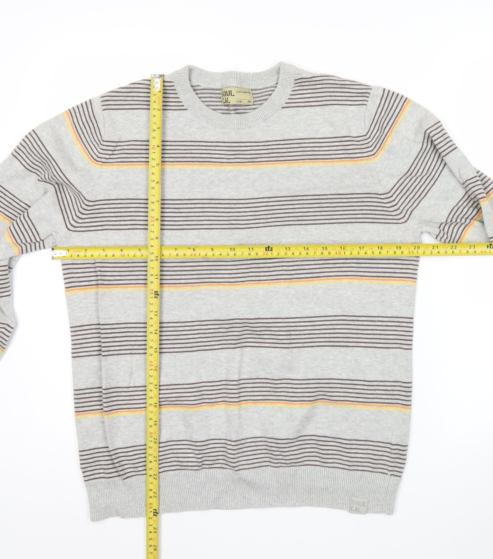 SoulCal Men’s Grey Striped Crew Neck Pullover Jumper Size L