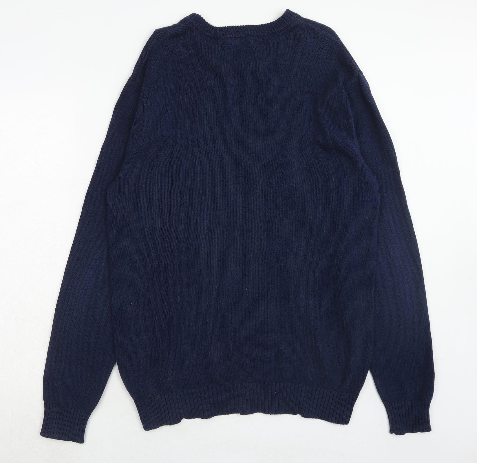 South Bay Mens Blue Round Neck Cotton Pullover Jumper Size S Long Sleeve