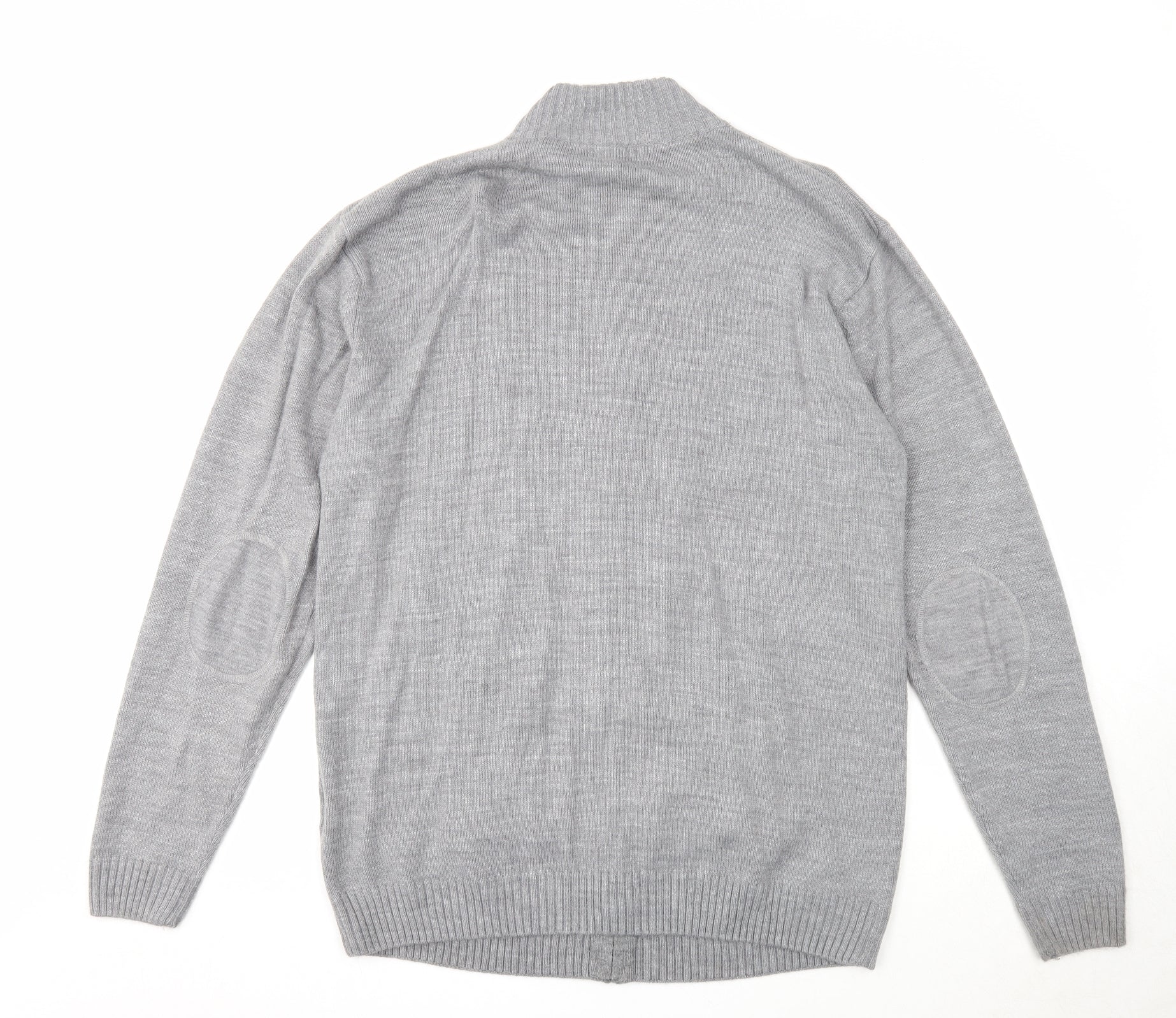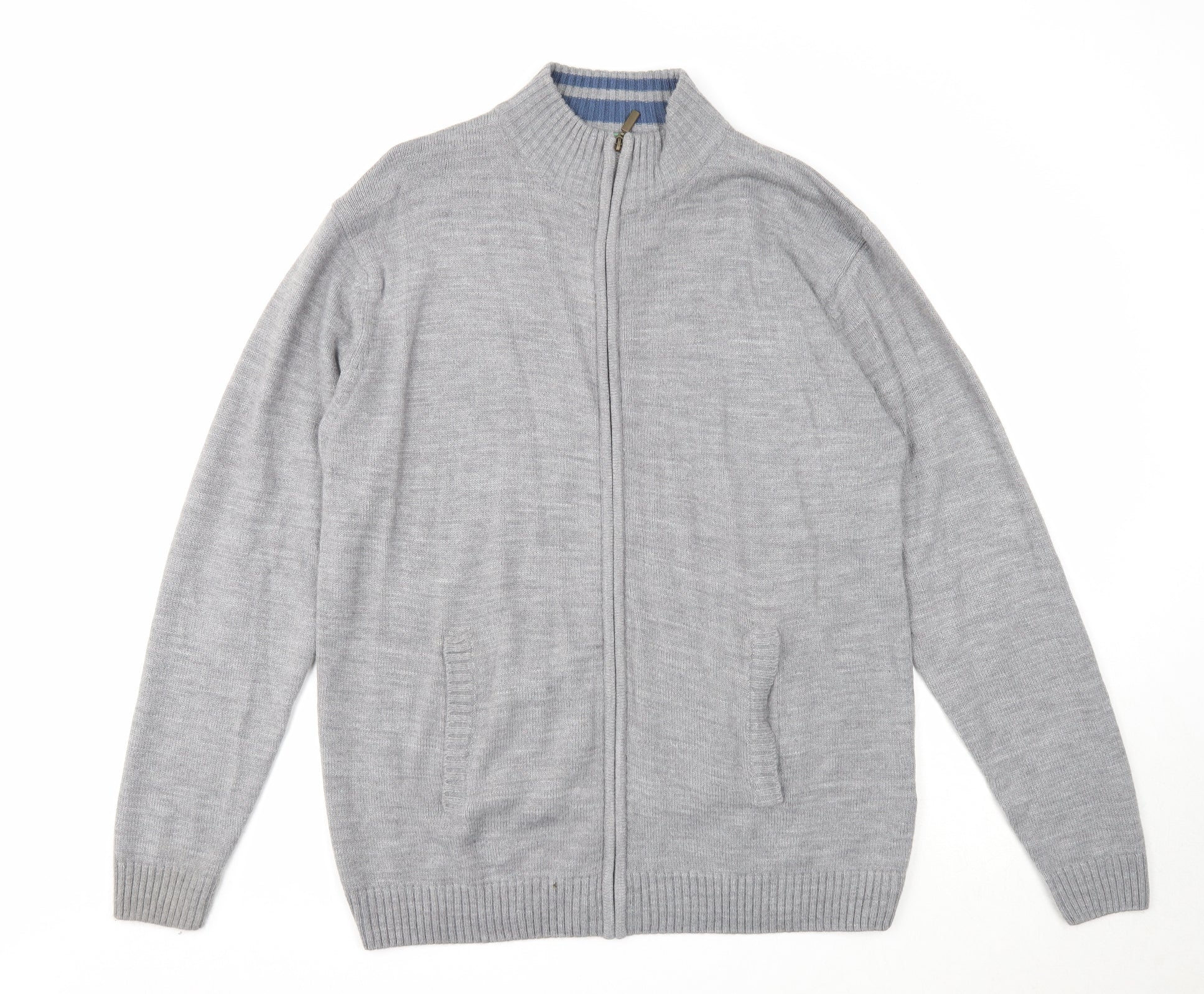 South Bay Mens Grey High Neck Acrylic Full Zip Jumper Size L Long Sleeve
