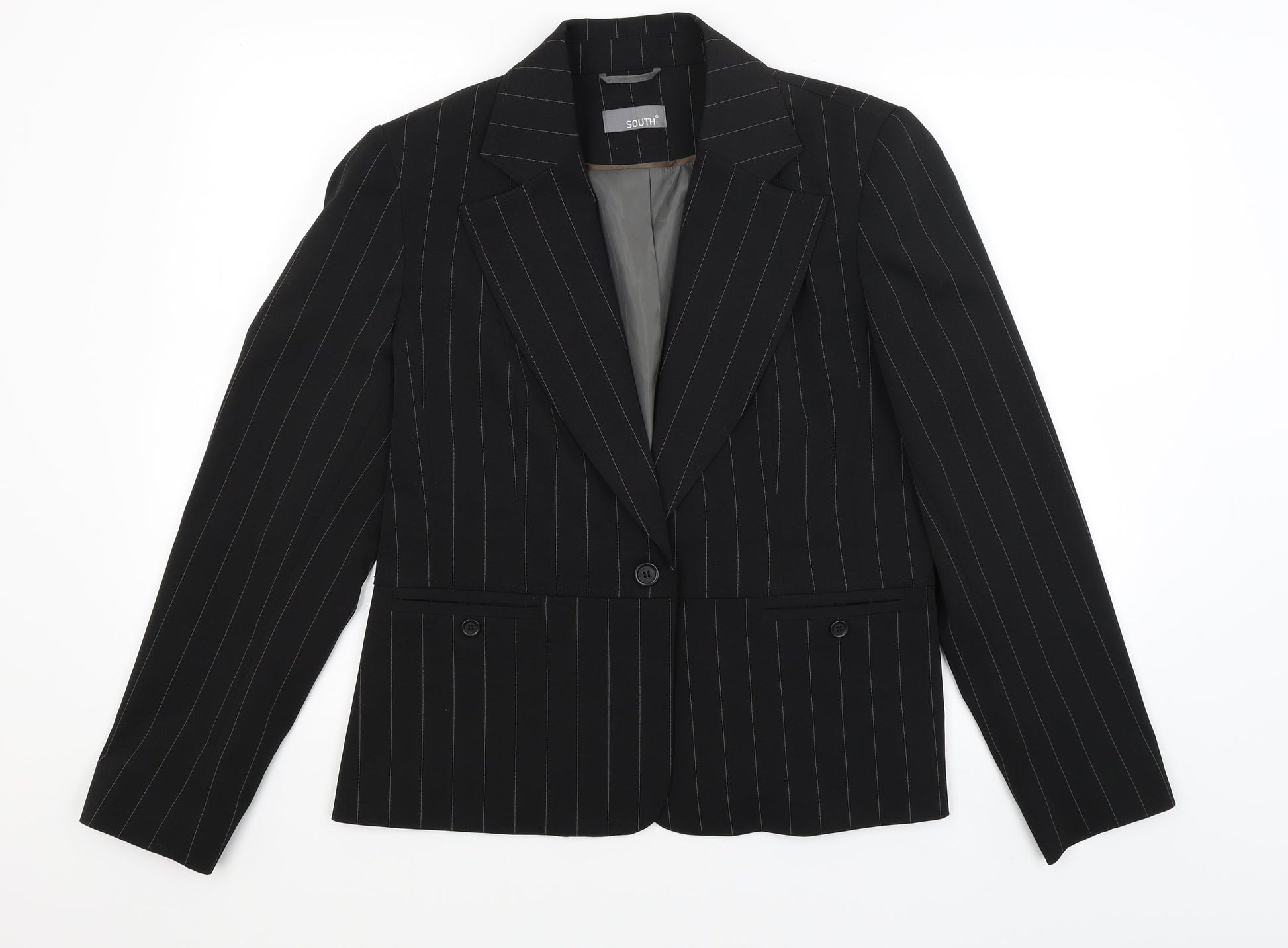 South Womens Black Striped Jacket Blazer Size 16