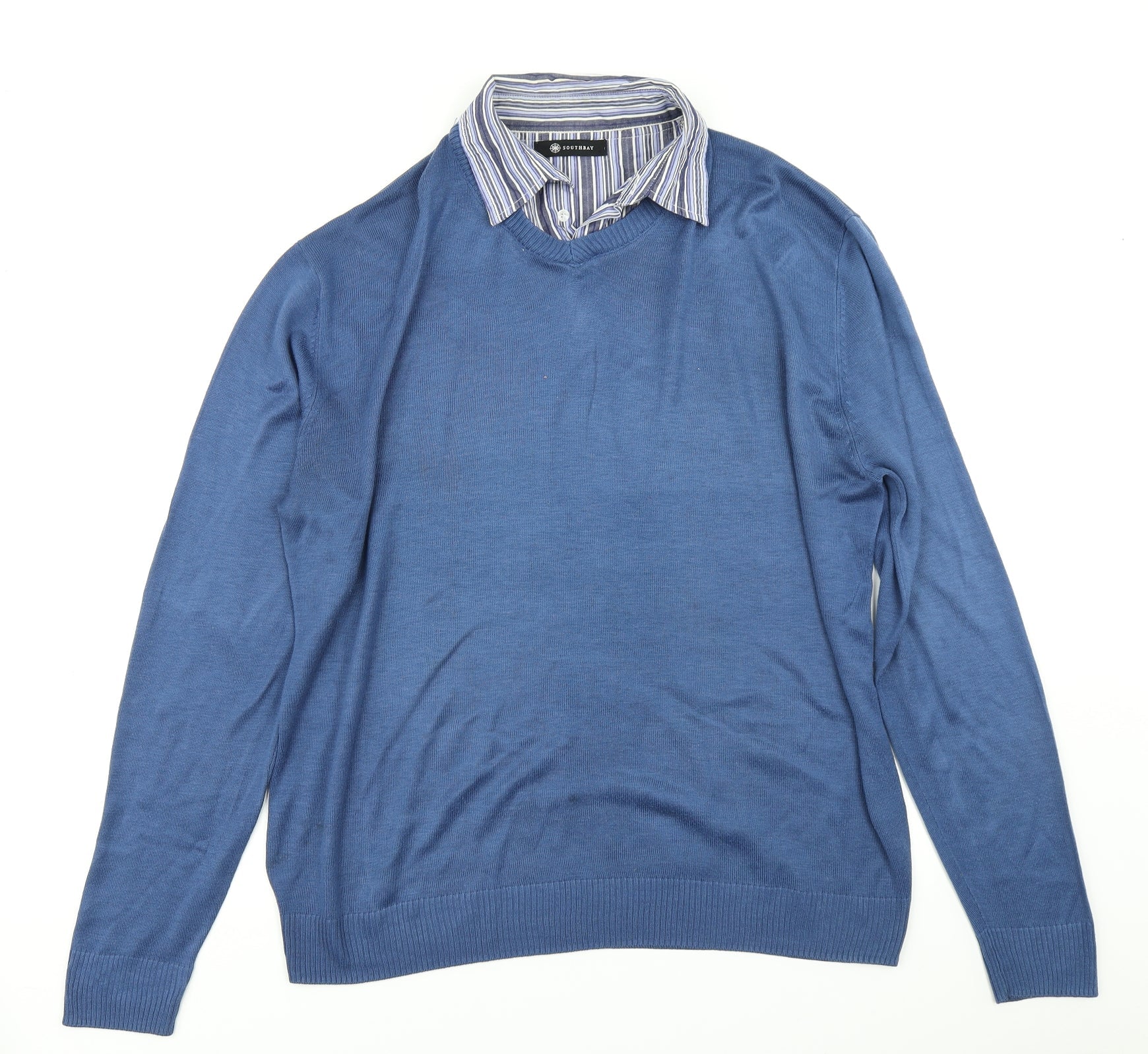 Southbay Mens Blue Striped Knit Pullover Jumper Size M
