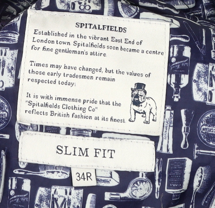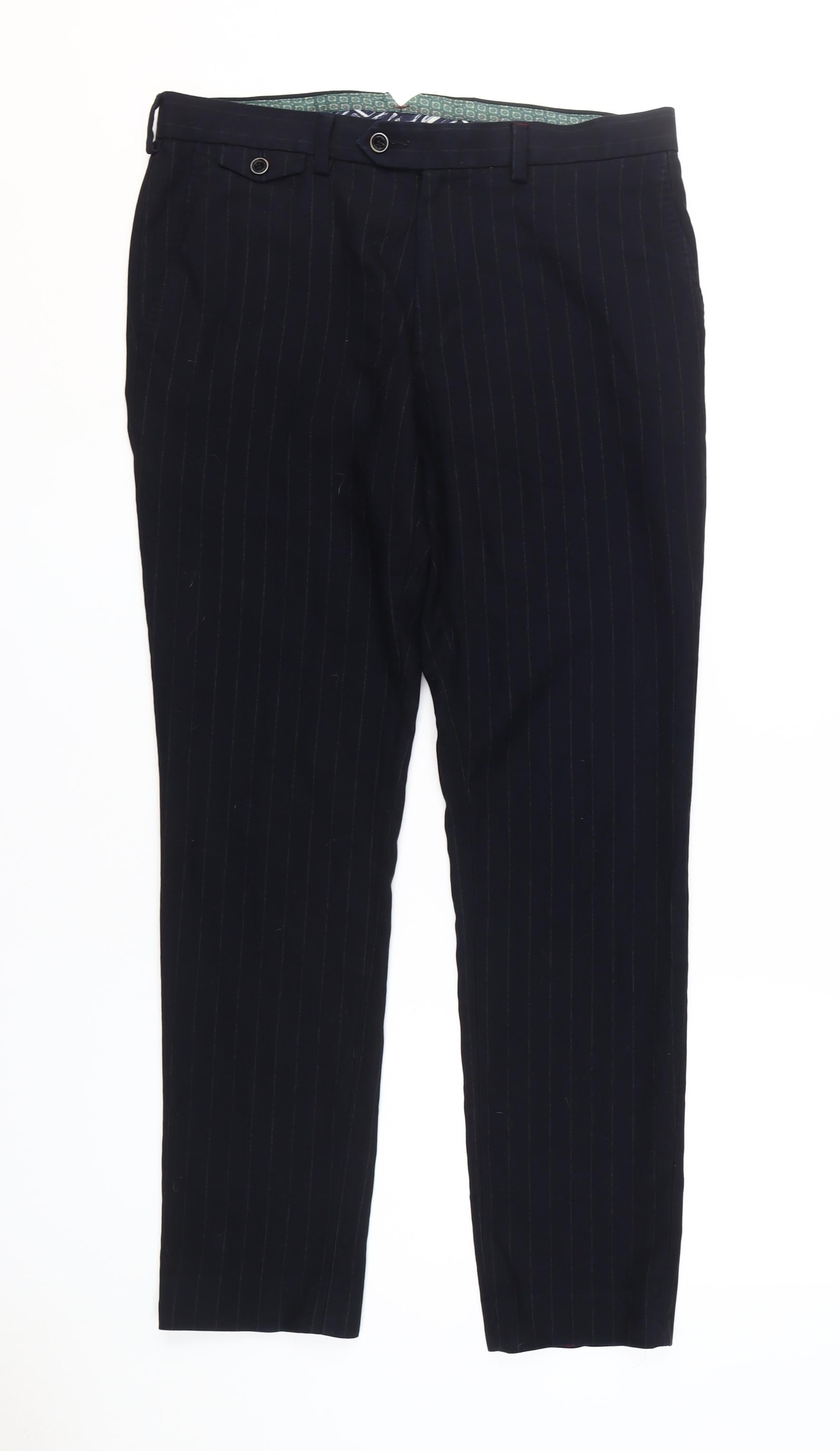 Spitalfields Men's Black Slim Fit Striped Trousers, 34