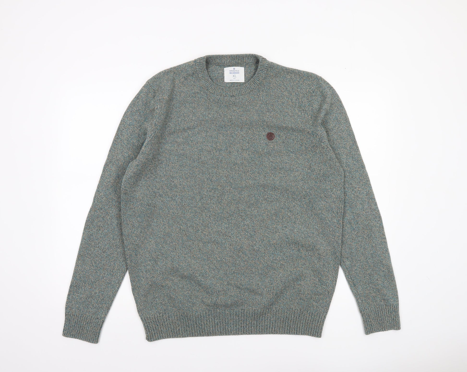 Springfield Men’s Green Cotton Blend Crew Neck Jumper XL