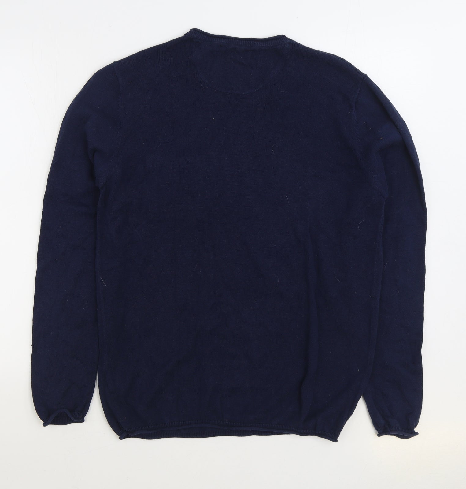 Springfield Mens Blue Round Neck Cotton Pullover Jumper Size L