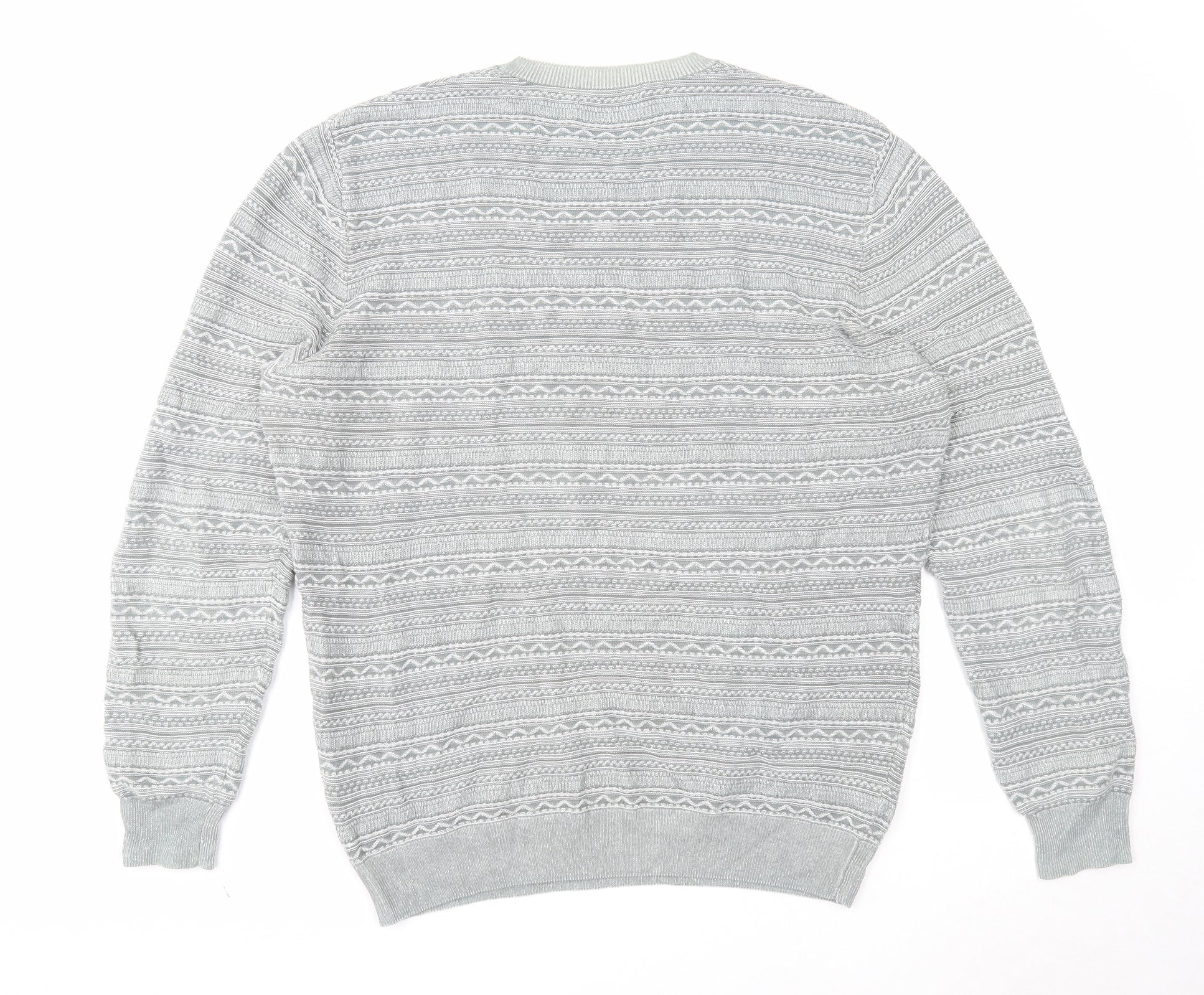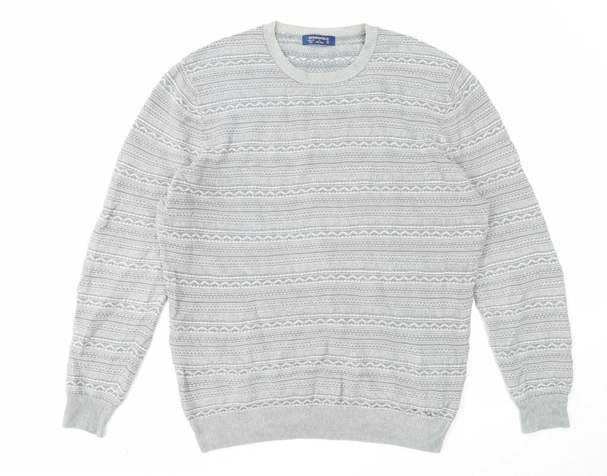 Springfield Mens Grey Round Neck Fair Isle Cotton Pullover Jumper Size XL Long Sleeve