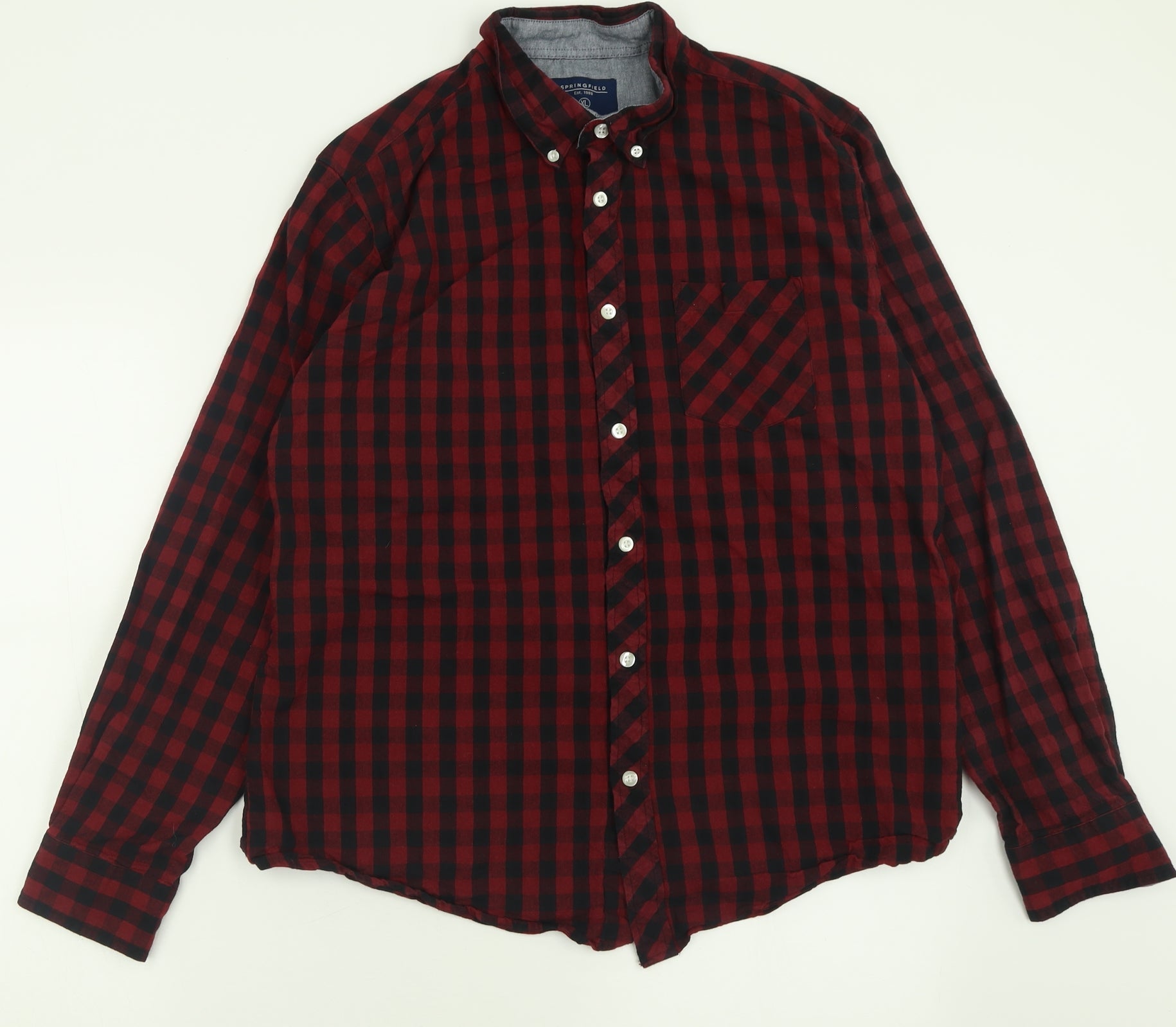 Springfield Mens Red Plaid Cotton Button-Up Size XL Collared Button