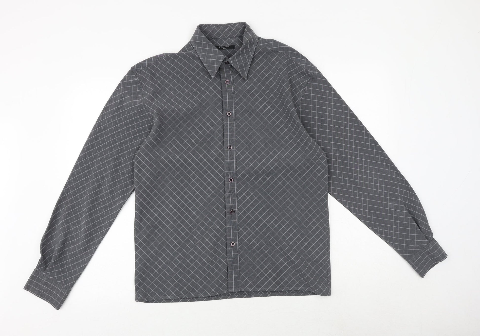 St Bernard Mens Grey Argyle/Diamond Polyester Button-Up Size S Collared Button