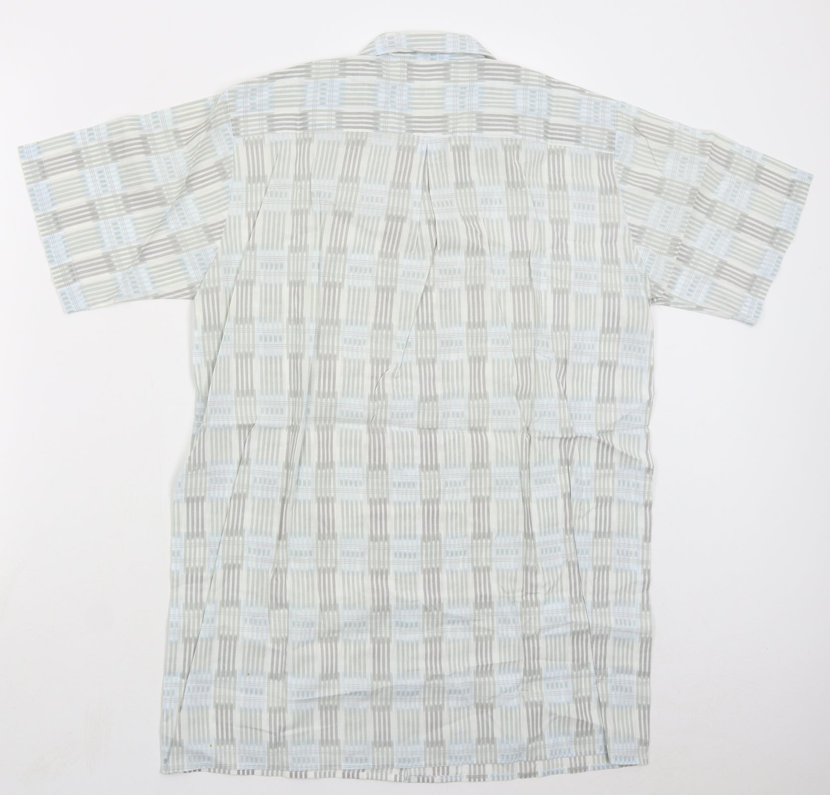 ST Bernard Mens Grey Geometric Polyester Button-Up Size M Collared Button