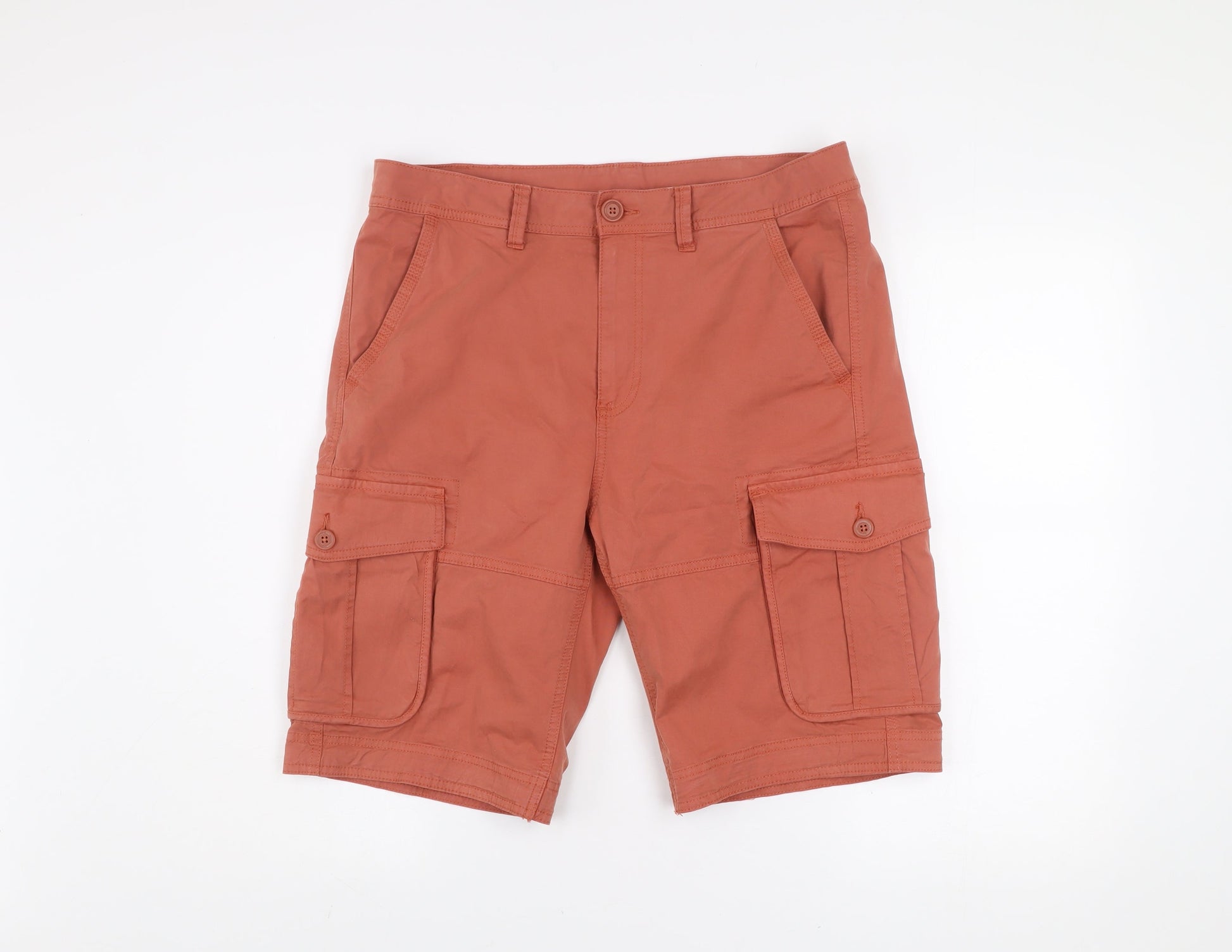 St. Bernard Men's Orange Cargo Shorts 34in Cotton Blend Casual