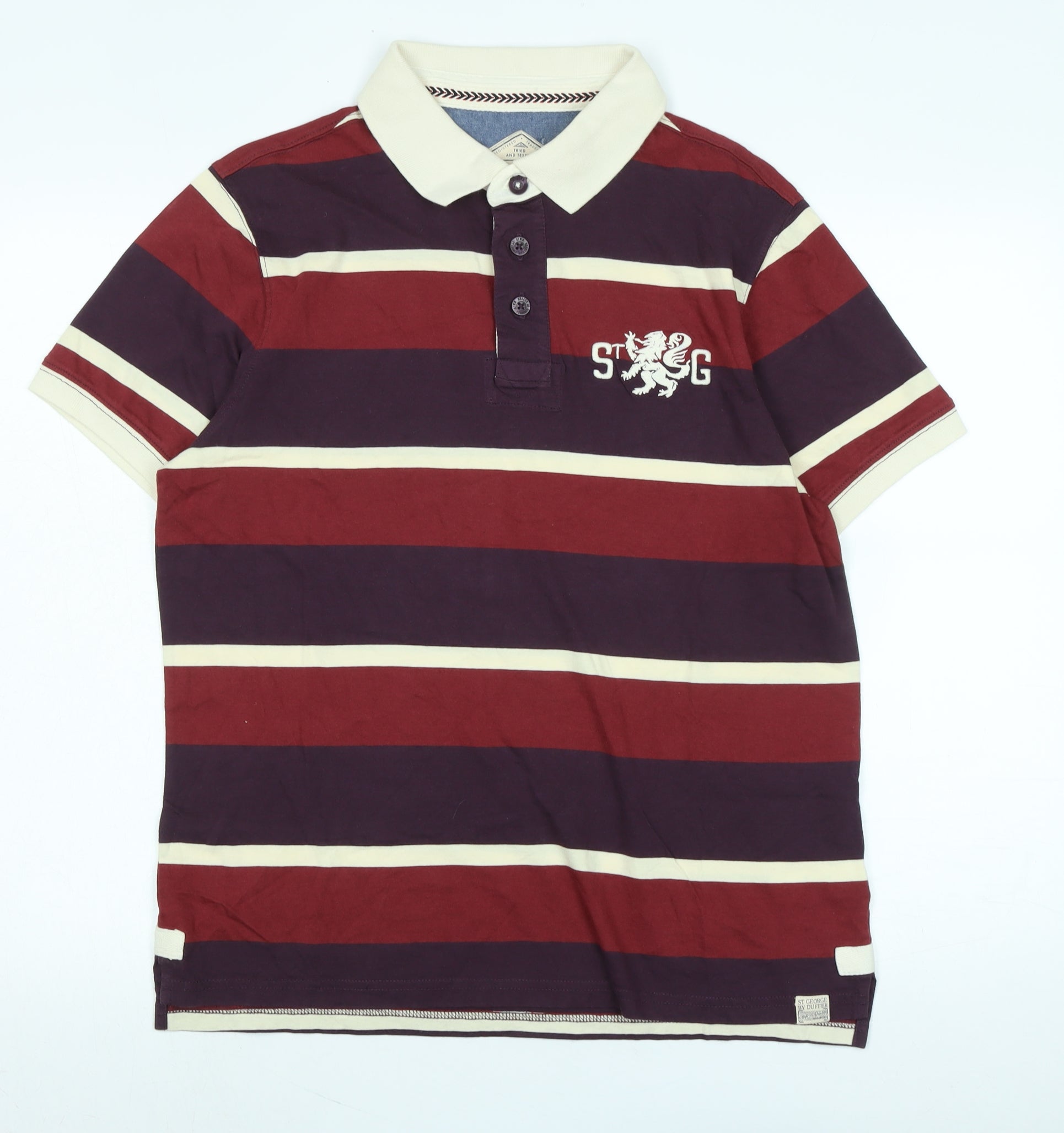 St George by duffer Mens Multicoloured Striped Camel Polo Size M Collared - Logo