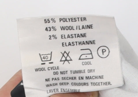 - Material Breakdown: 55% Polyester 43% Wool 2% Elastane