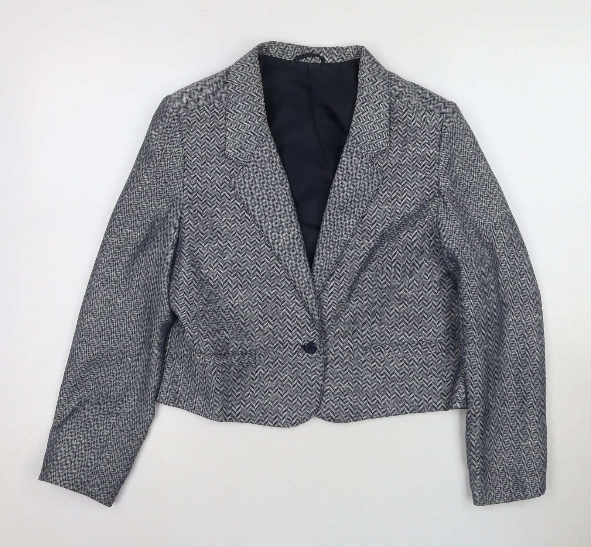 St Michael Grey Herringbone Blazer Women Size 12