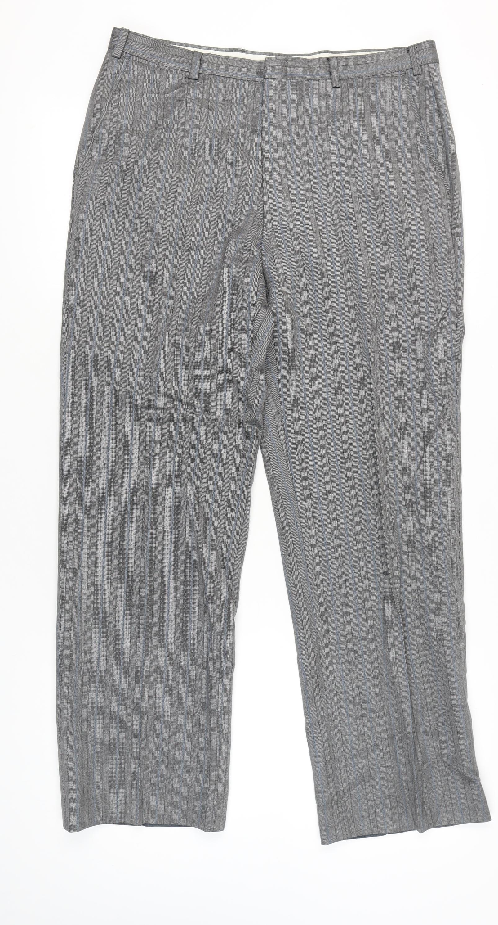 St Michael Men’s Grey Wool Striped Dress Pants Size 36x31