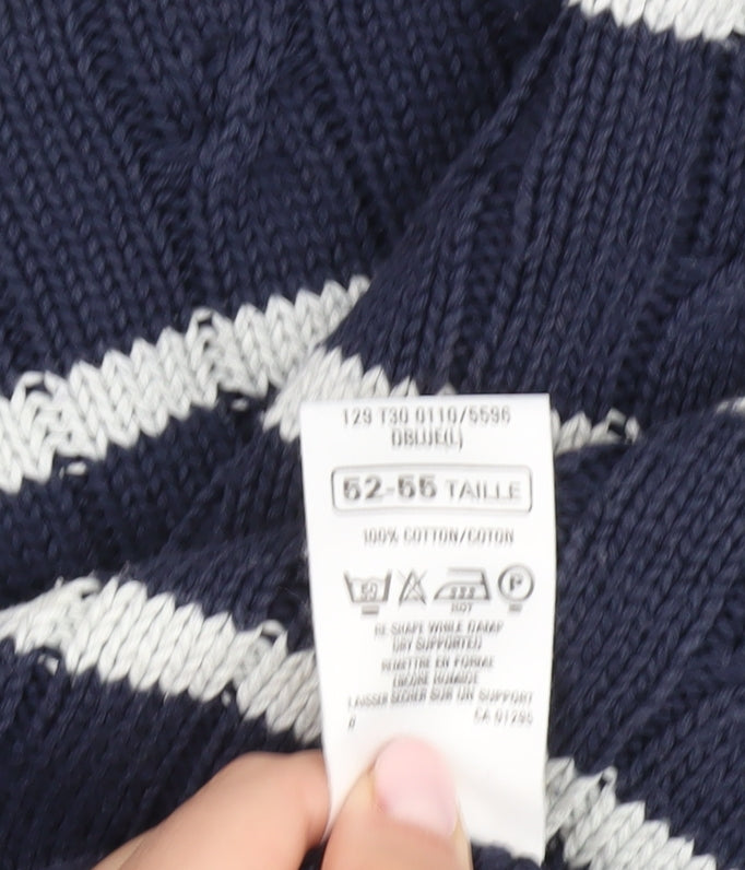 St Michael Men's Blue Striped Cotton Pullover Jumper, L