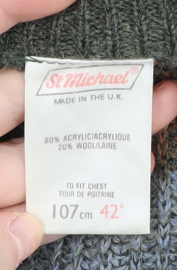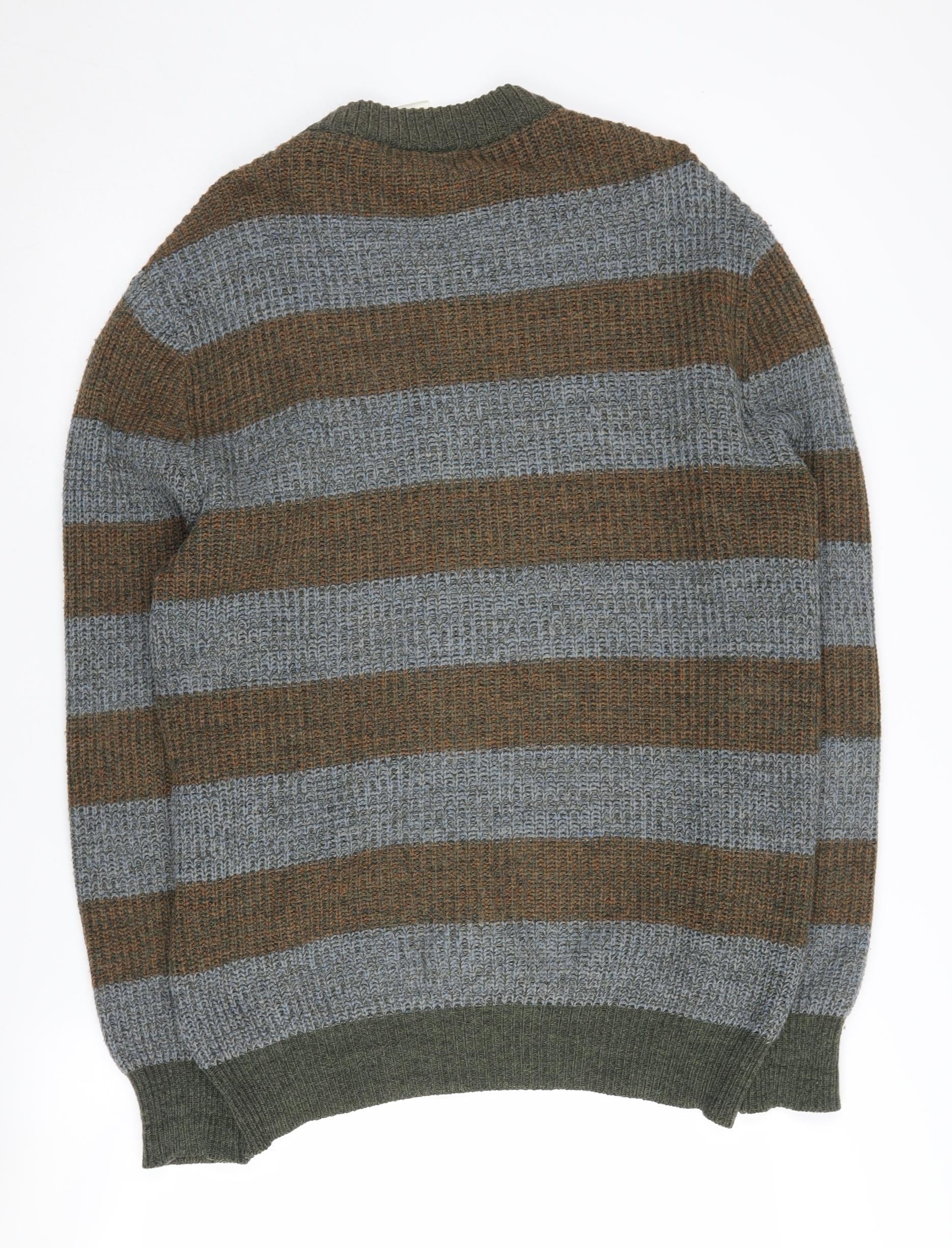 St Michael Men's Brown Full Zip Striped Jumper L