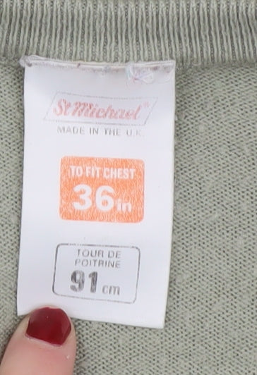 St Michael Men's Green Pullover Jumper, S, V-Neck, Vintage