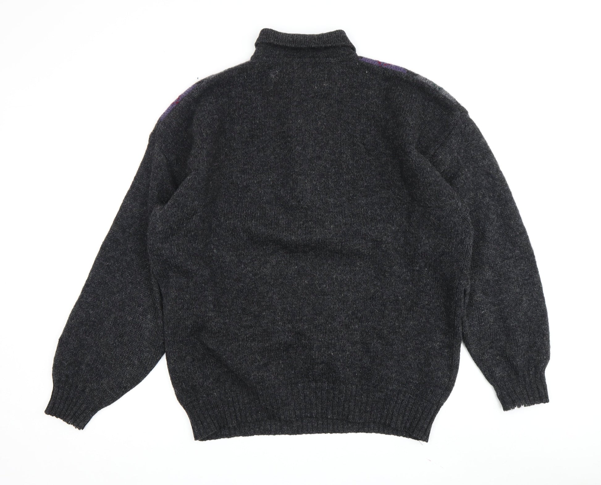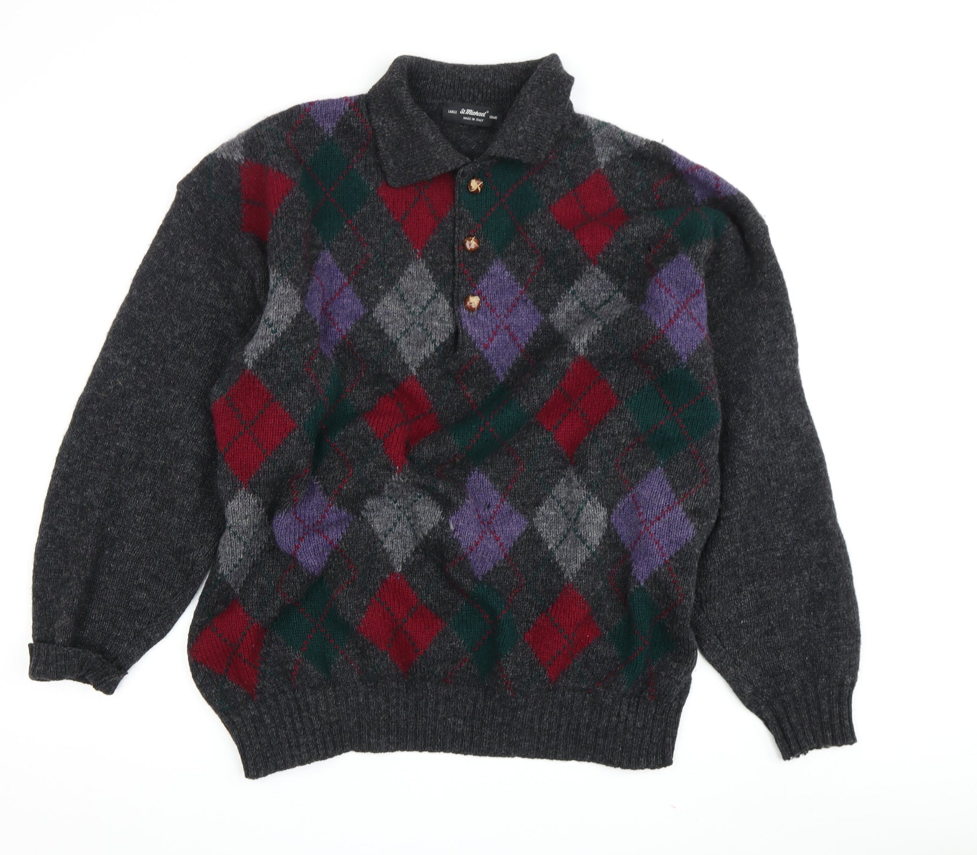 St Michael Men's Grey Argyle Pullover L Retro Wool Blend
