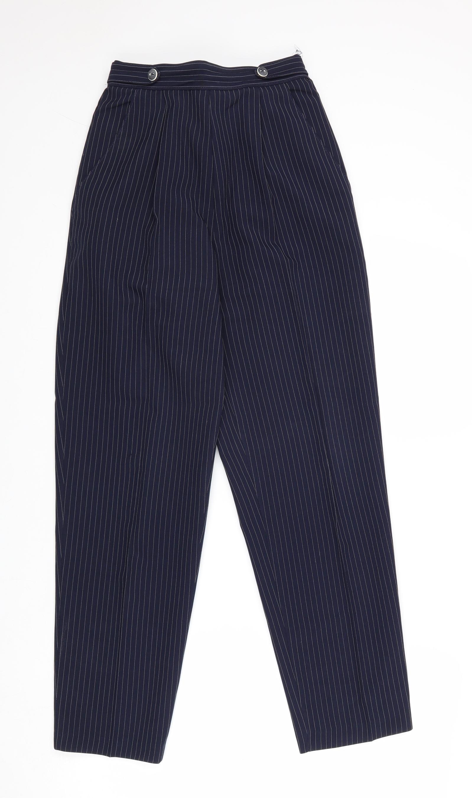 St Michael Womens Blue Striped Polyester Trousers Size 10 Regular