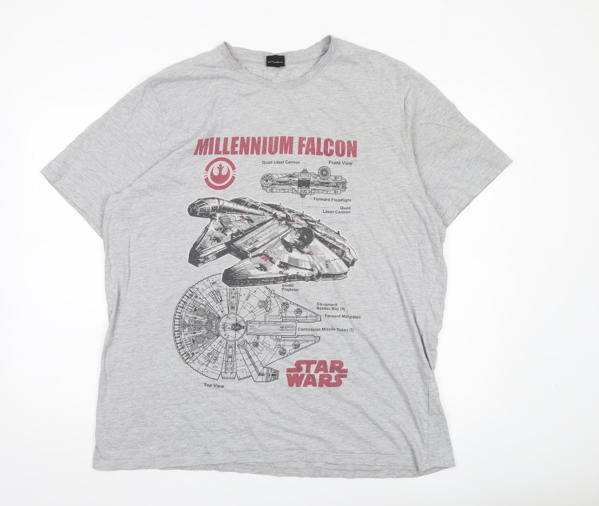 Star Wars Men’s 2XL Grey Millennium Falcon Graphic T-Shirt