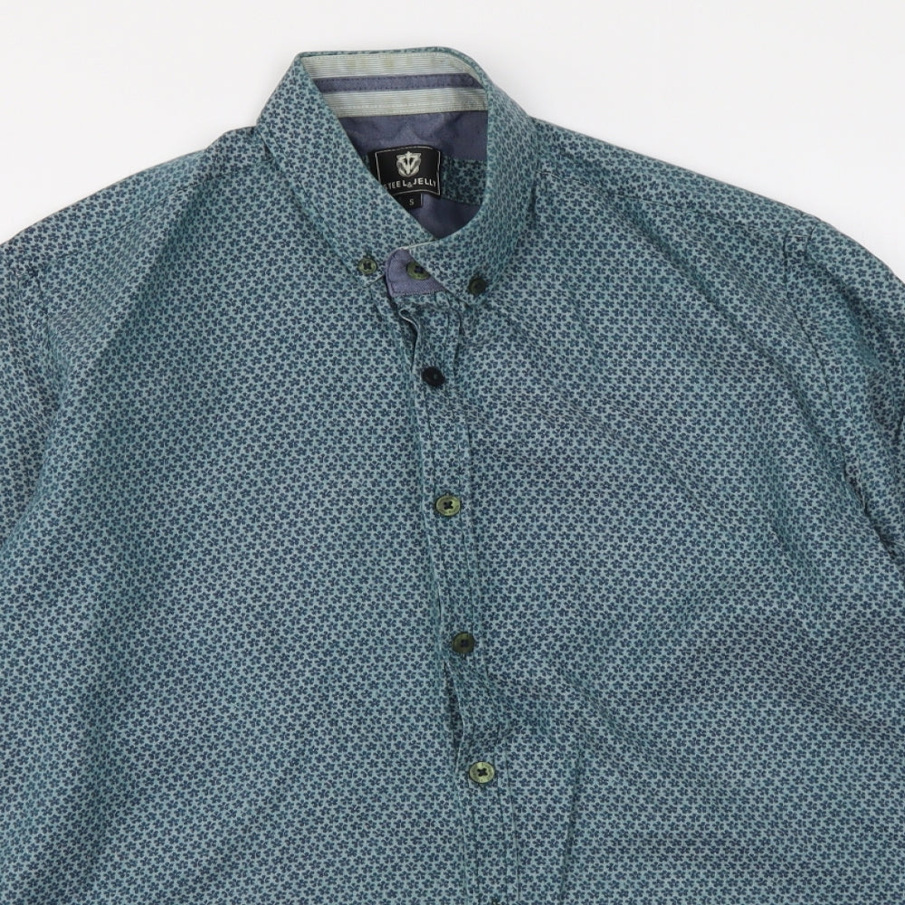 Stell & Jelly Mens Blue Geometric Cotton Button-Up Size S Collared Button