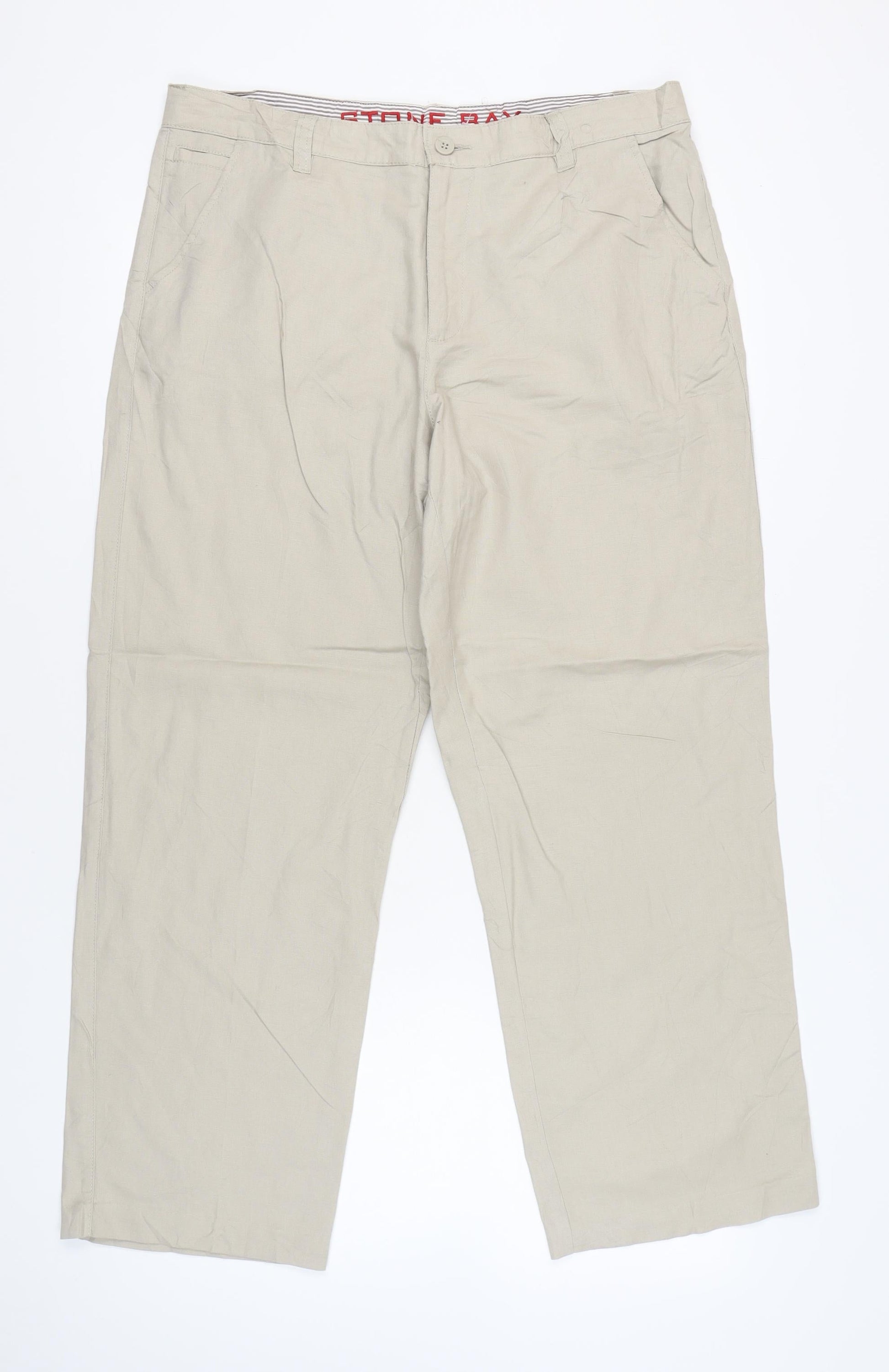 Stone Bay Men’s Beige Chino Trousers Linen Blend 38W 34L Straight