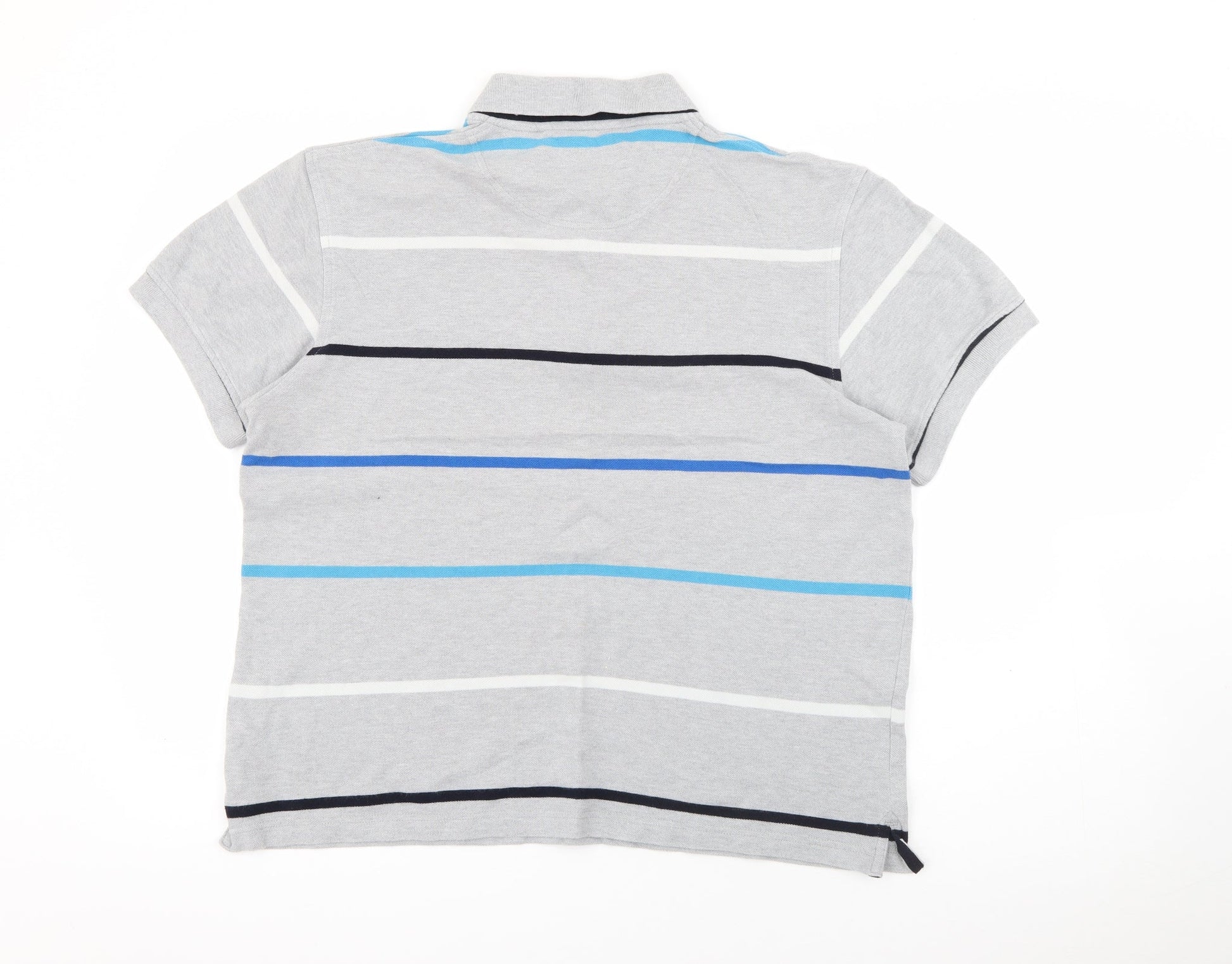 Stone Bay Mens Grey Striped Cotton Polo Size M Collared Button