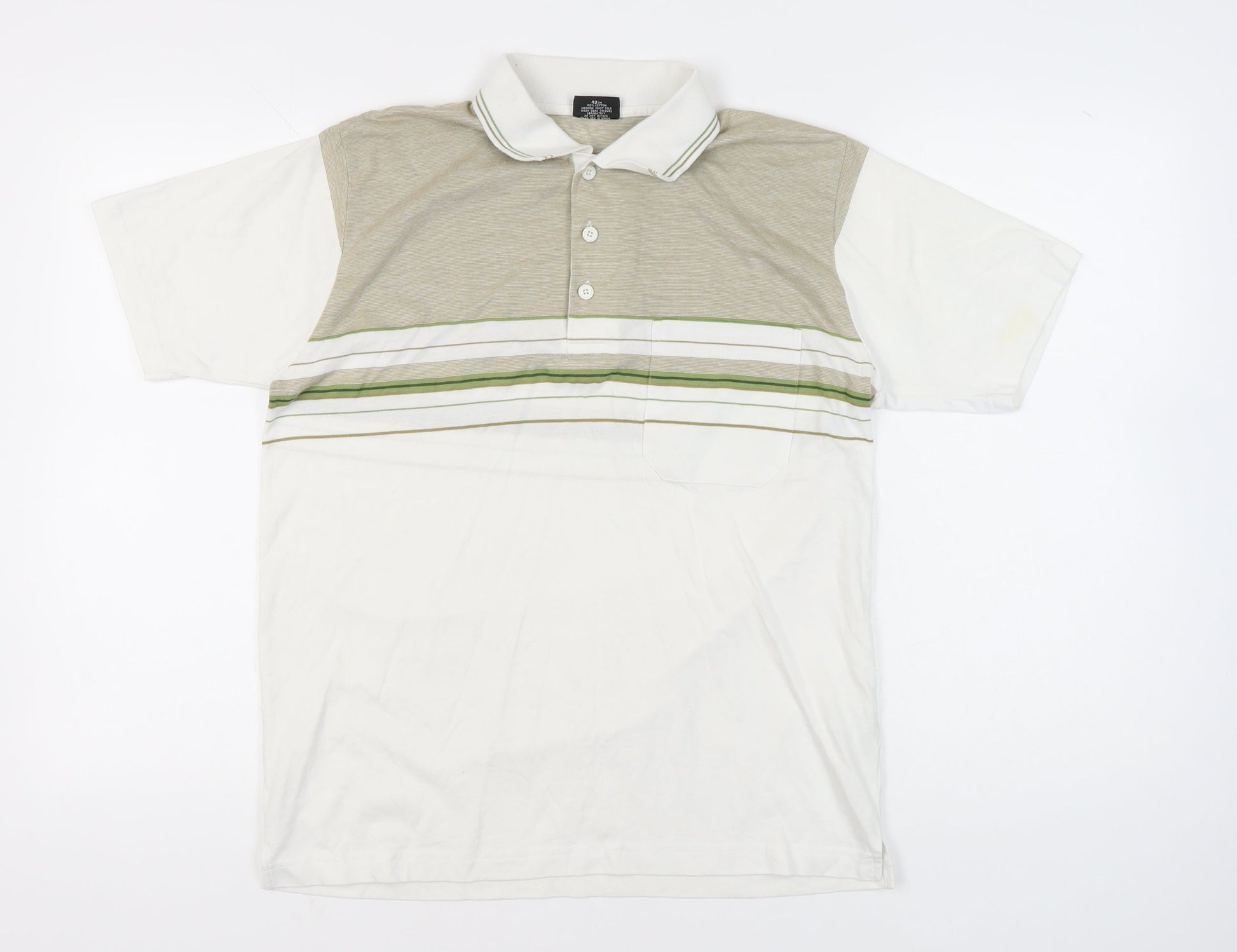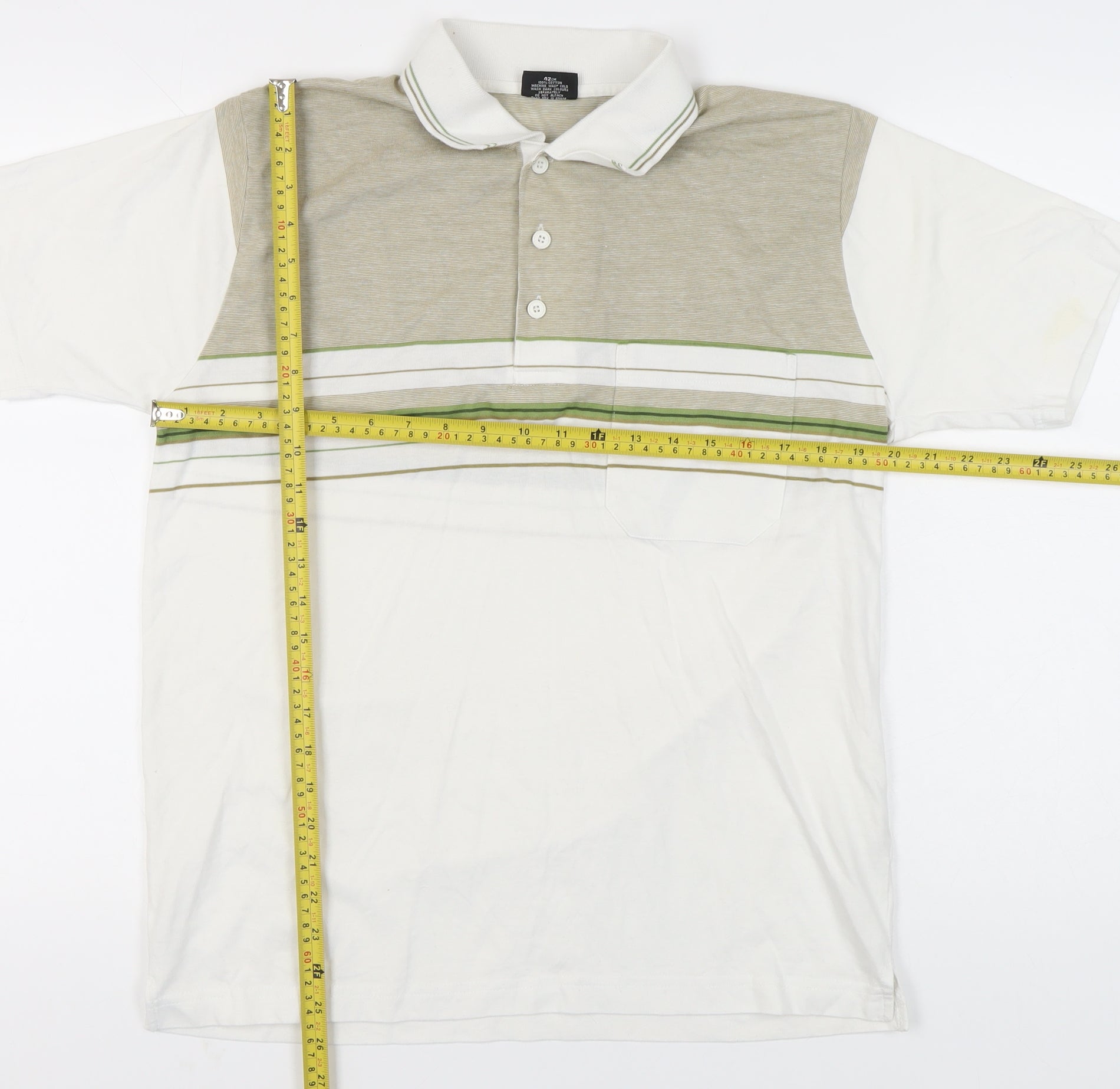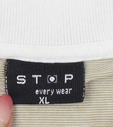 STOP Men’s Beige XL Striped Cotton Short Sleeve Polo Shirt