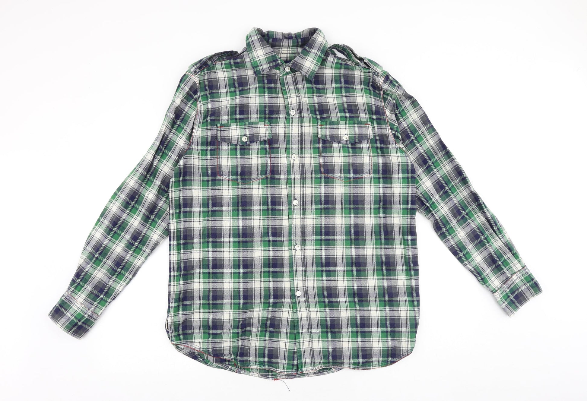 Store Twenty One Mens Green Plaid Cotton Button-Up Size M Collared Button
