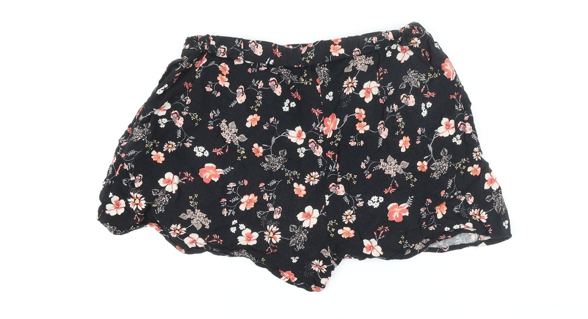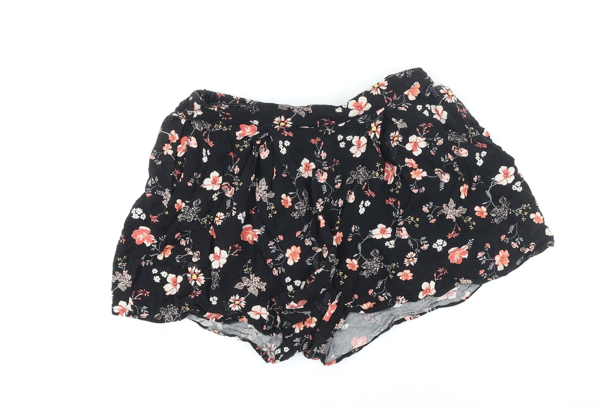 Stradivarius Womens Black Floral Viscose Basic Shorts Size M Regular