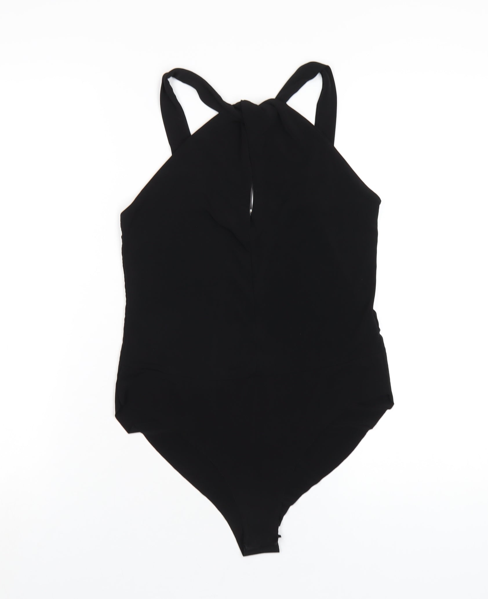 Stradivarius Womens Black Polyester Bodysuit One-Piece Size L Snap