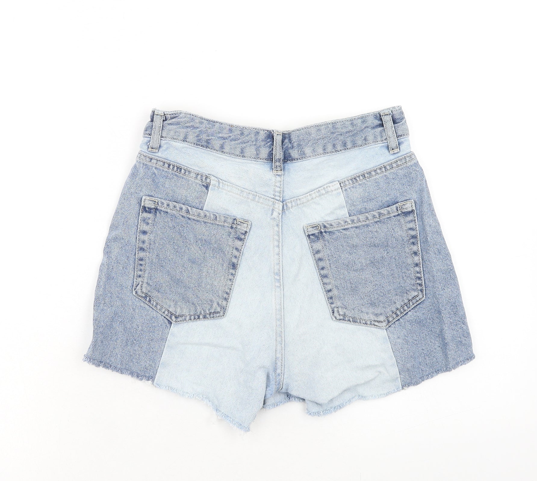 Stradivarius Womens Blue Check Cotton Cut-Off Shorts Size 6 Regular Zip