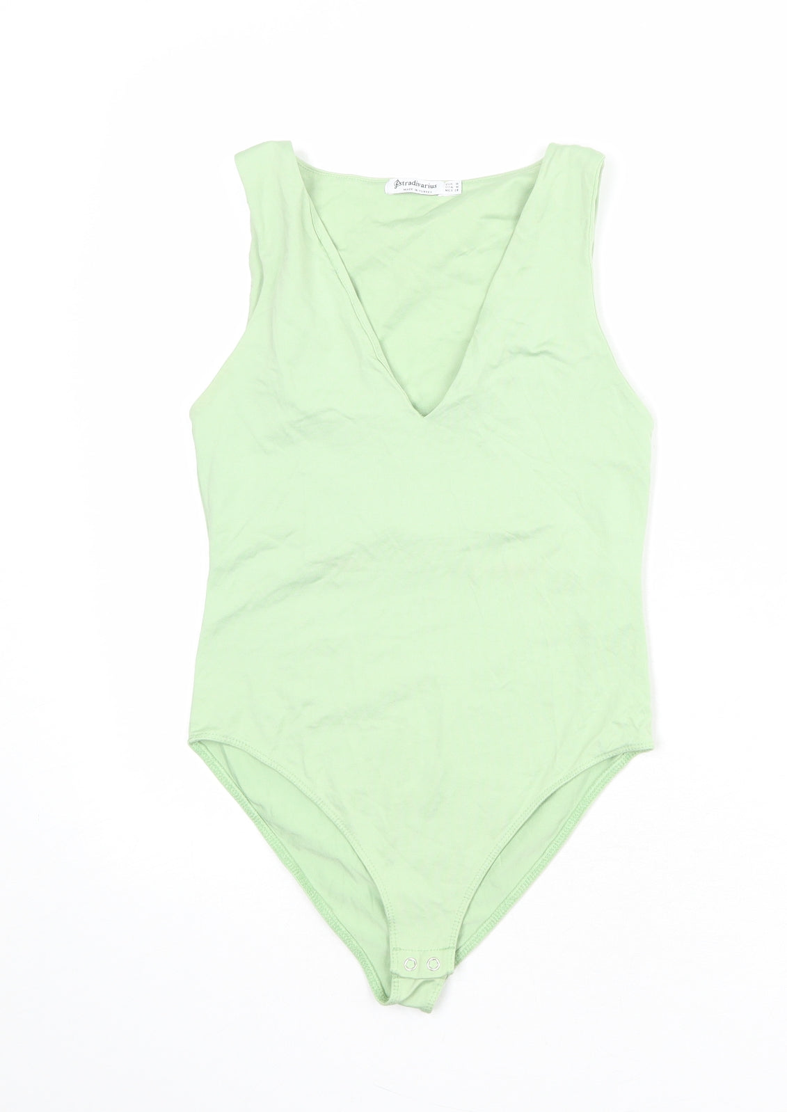Stradivarius Womens Green Nylon Bodysuit One-Piece Size M Snap