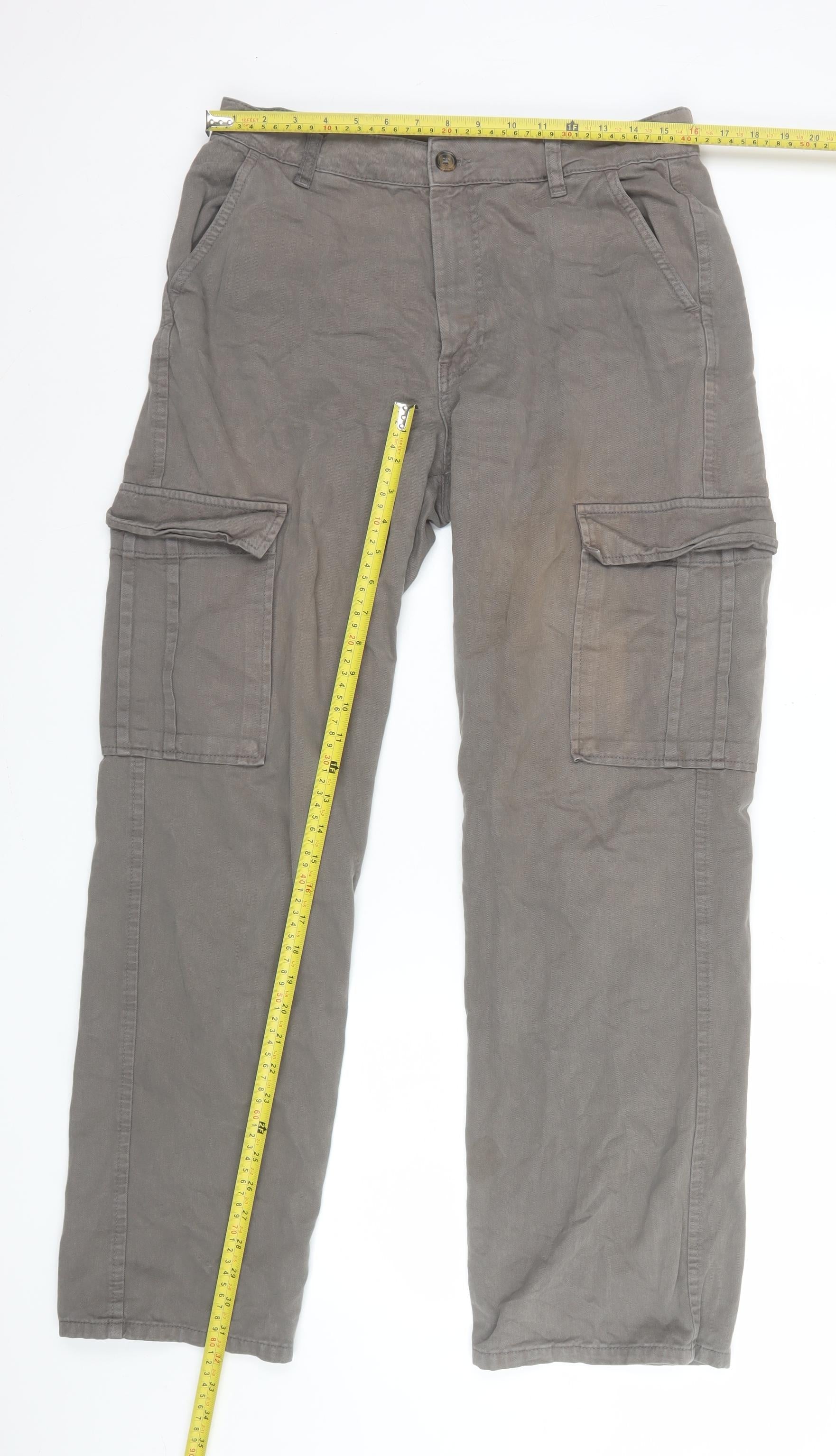 Stradivarius Womens Grey Cargo Trousers Size 14 Cotton Casual