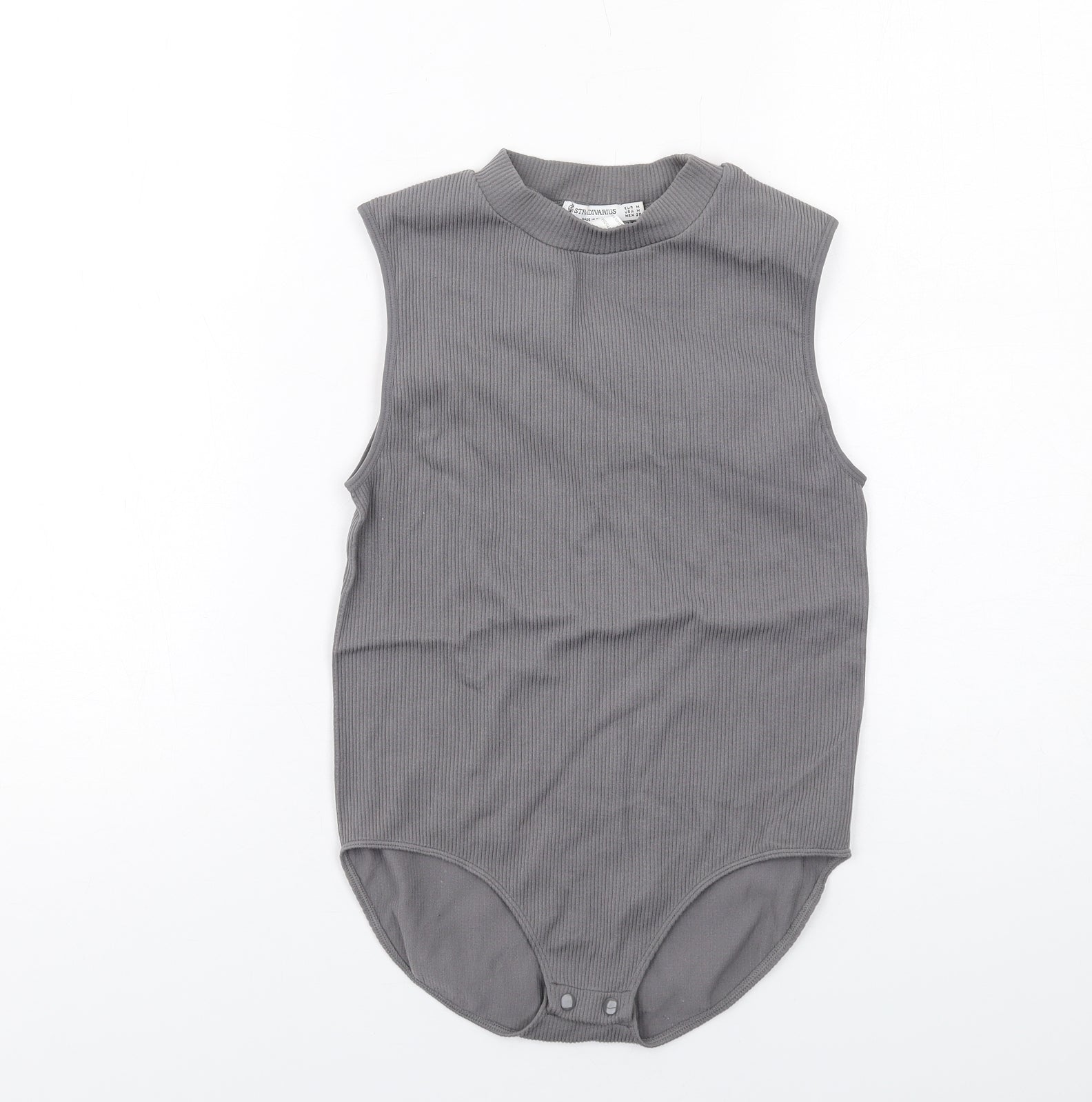 Stradivarius Womens Grey Polyamide Bodysuit One-Piece Size M Snap