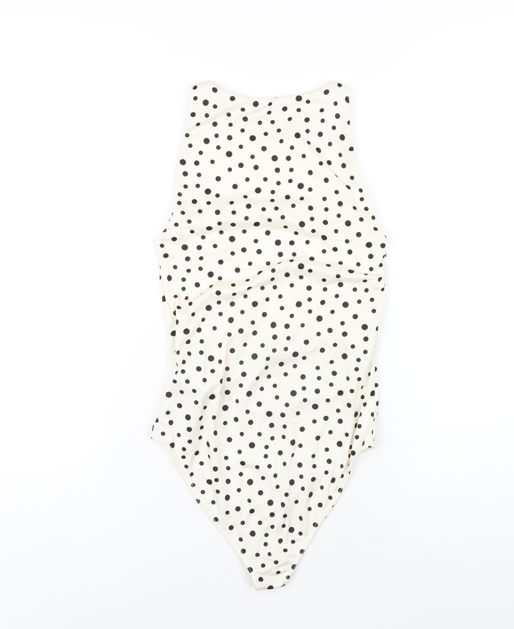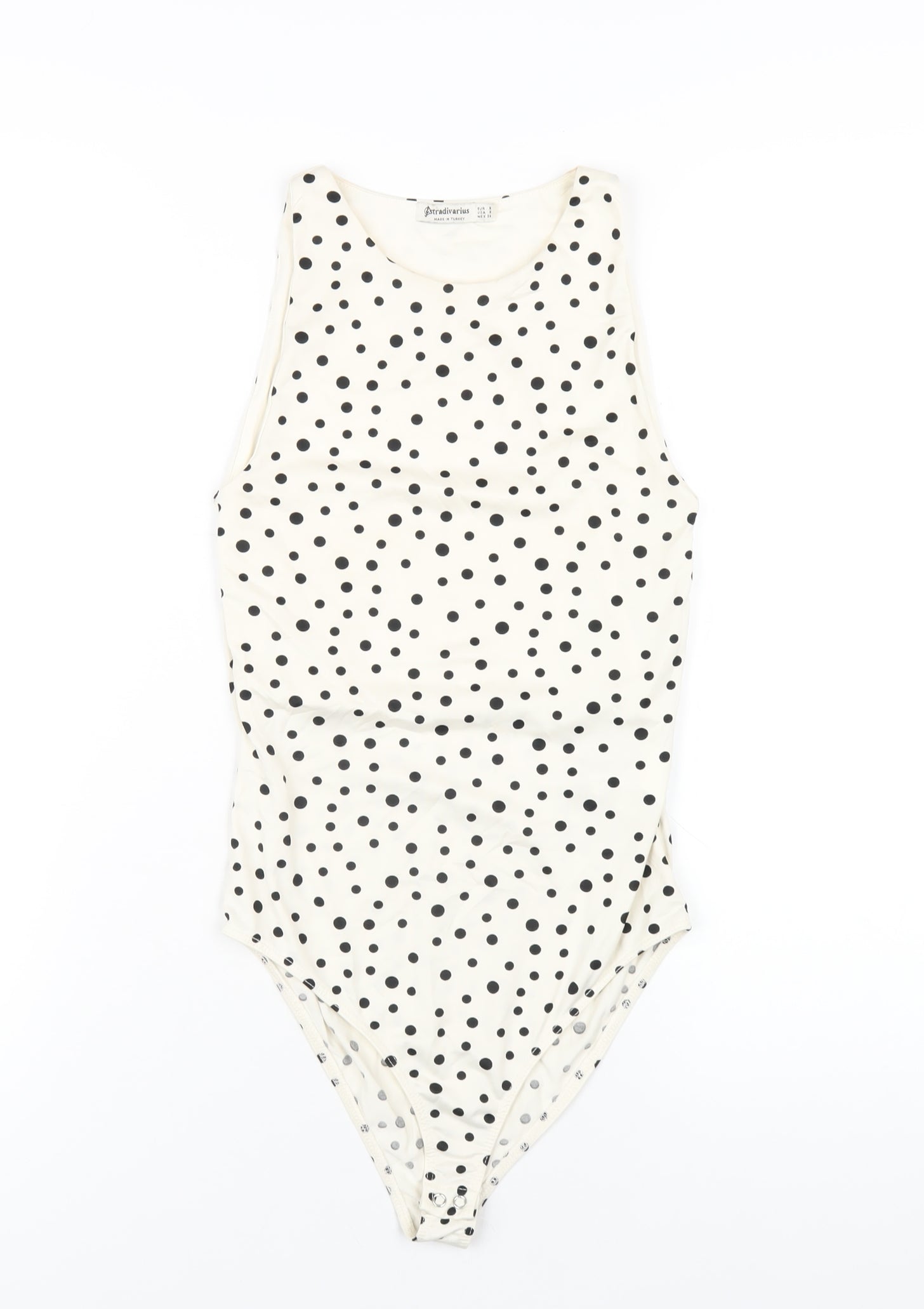 Stradivarius Womens Ivory Polka Dot Polyester Bodysuit One-Piece Size S Snap