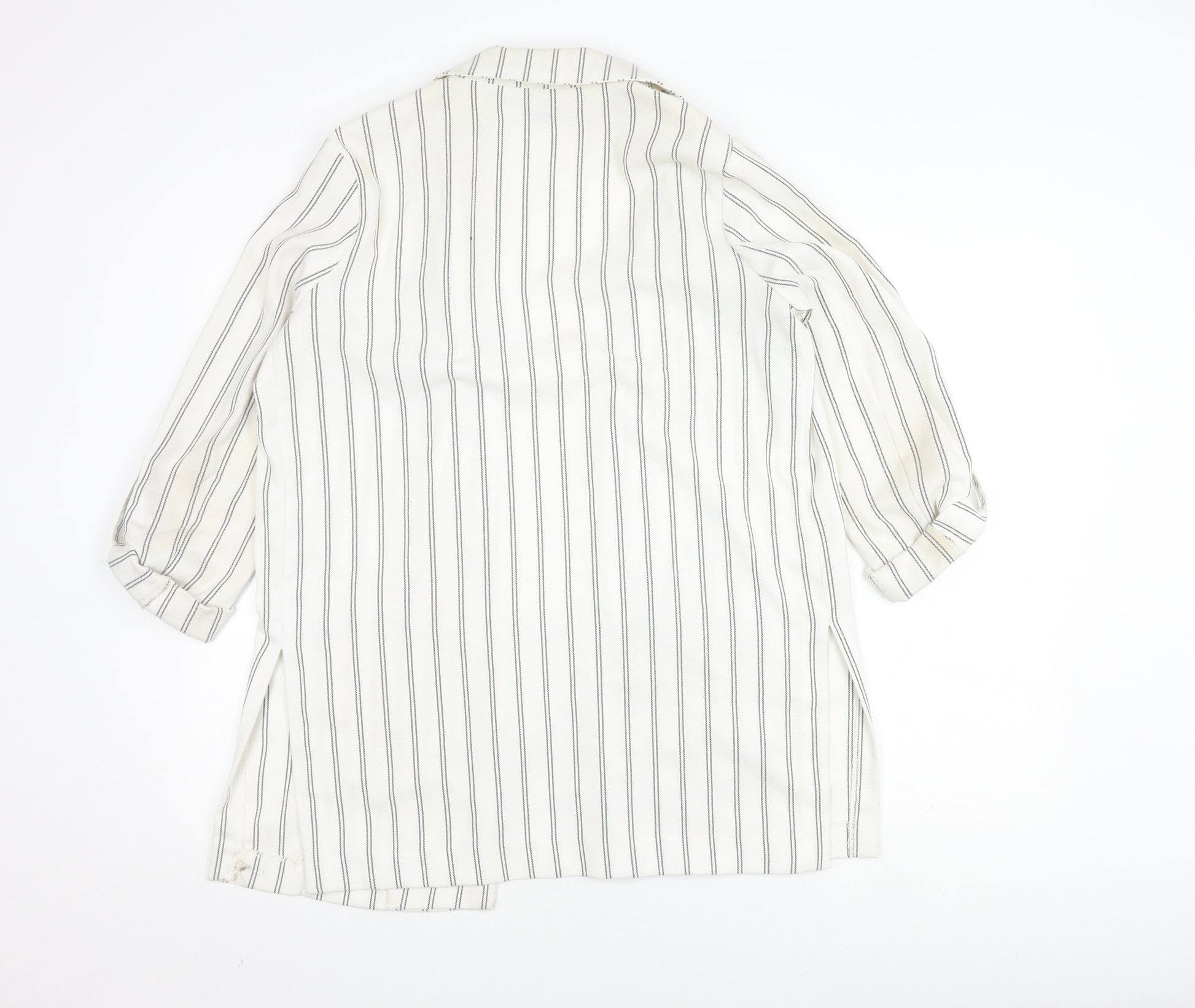 Stradivarius Women's White Blazer, Size 8, Striped Long Coat