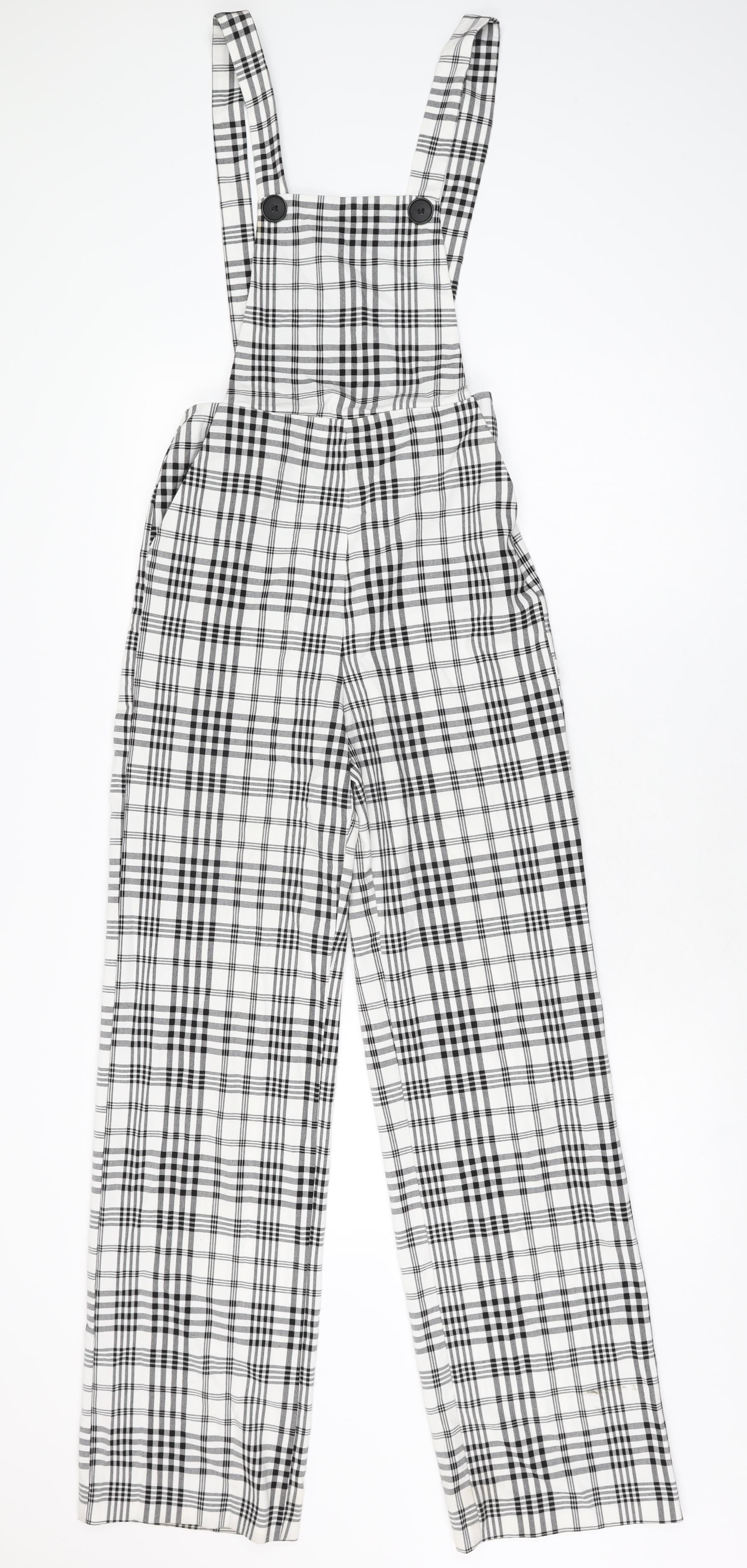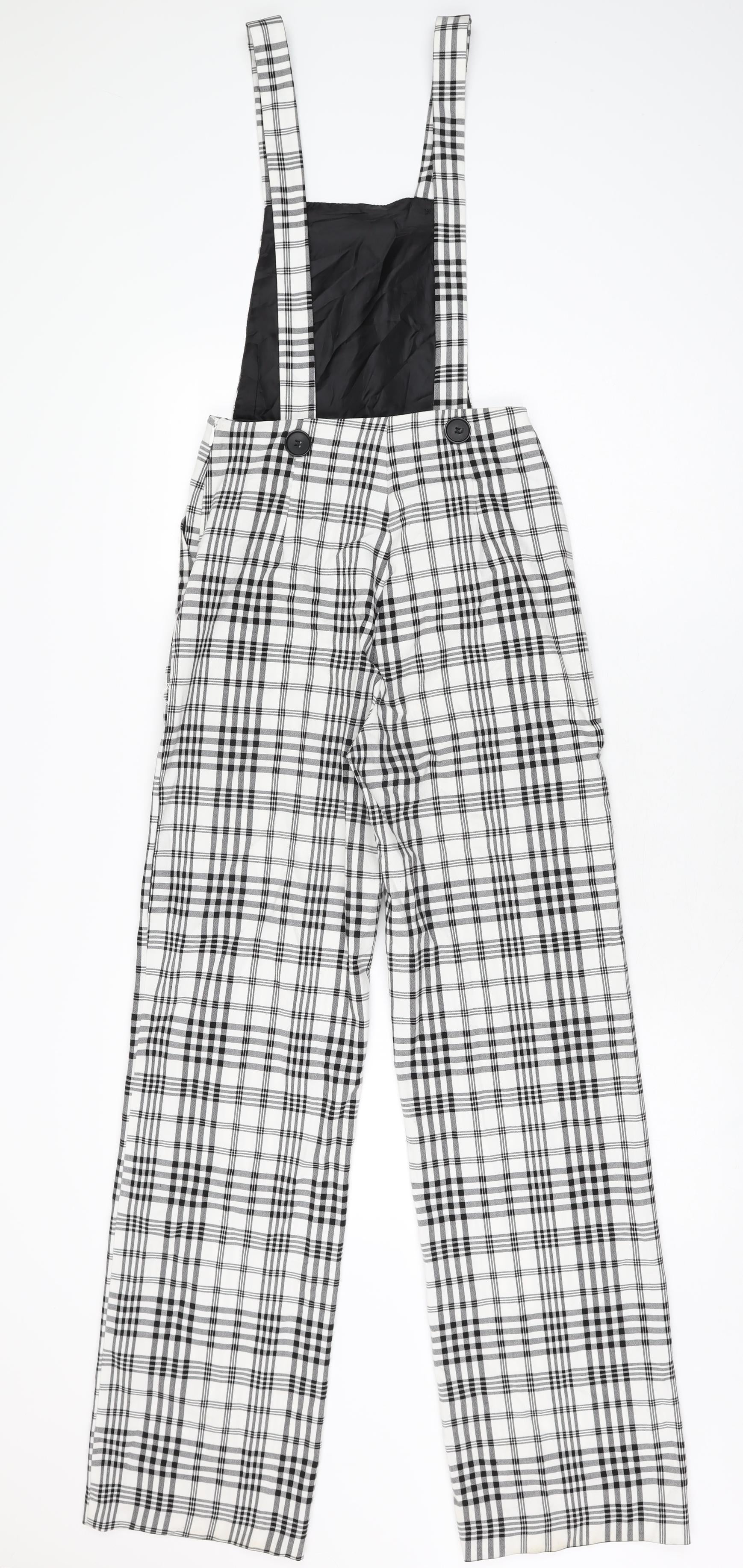 Stradivarius Womens White Plaid Polyester Dungaree One-Piece Size 6 L32 in Zip