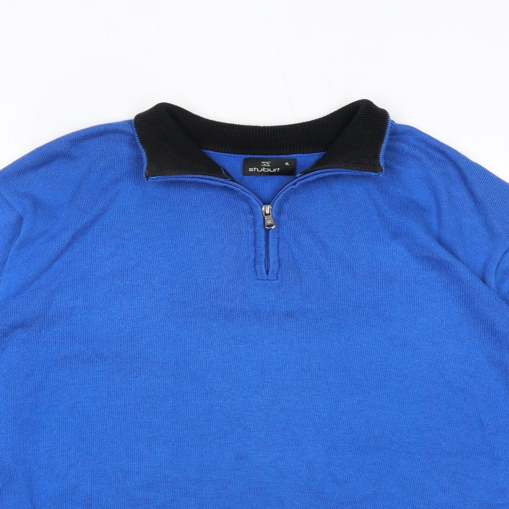 Stuburt Mens Blue Mock Neck Acrylic Pullover Jumper Size XL Long Sleeve