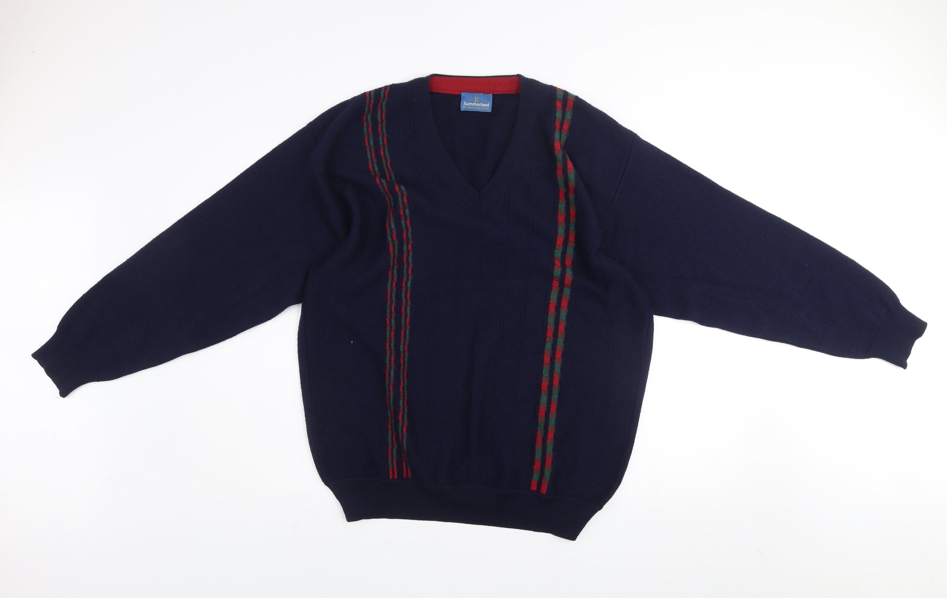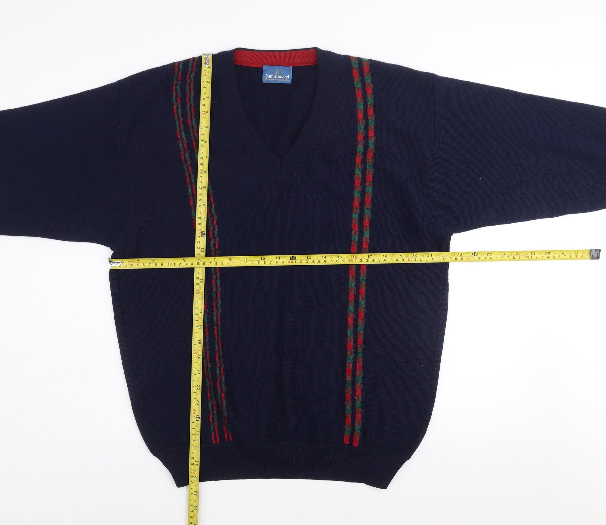 Summerland Men’s Navy Blue Wool Blend V-Neck Pullover Jumper Size L