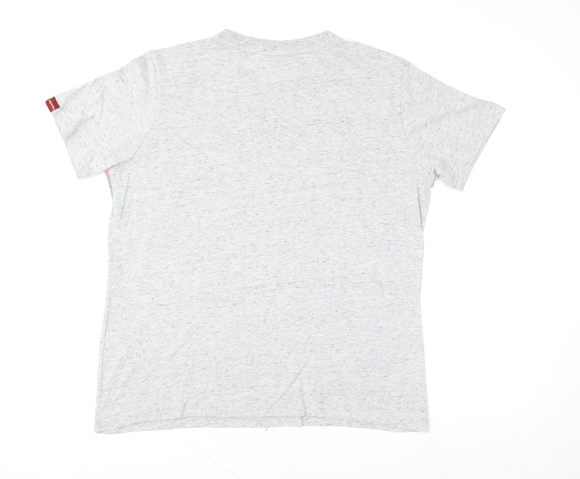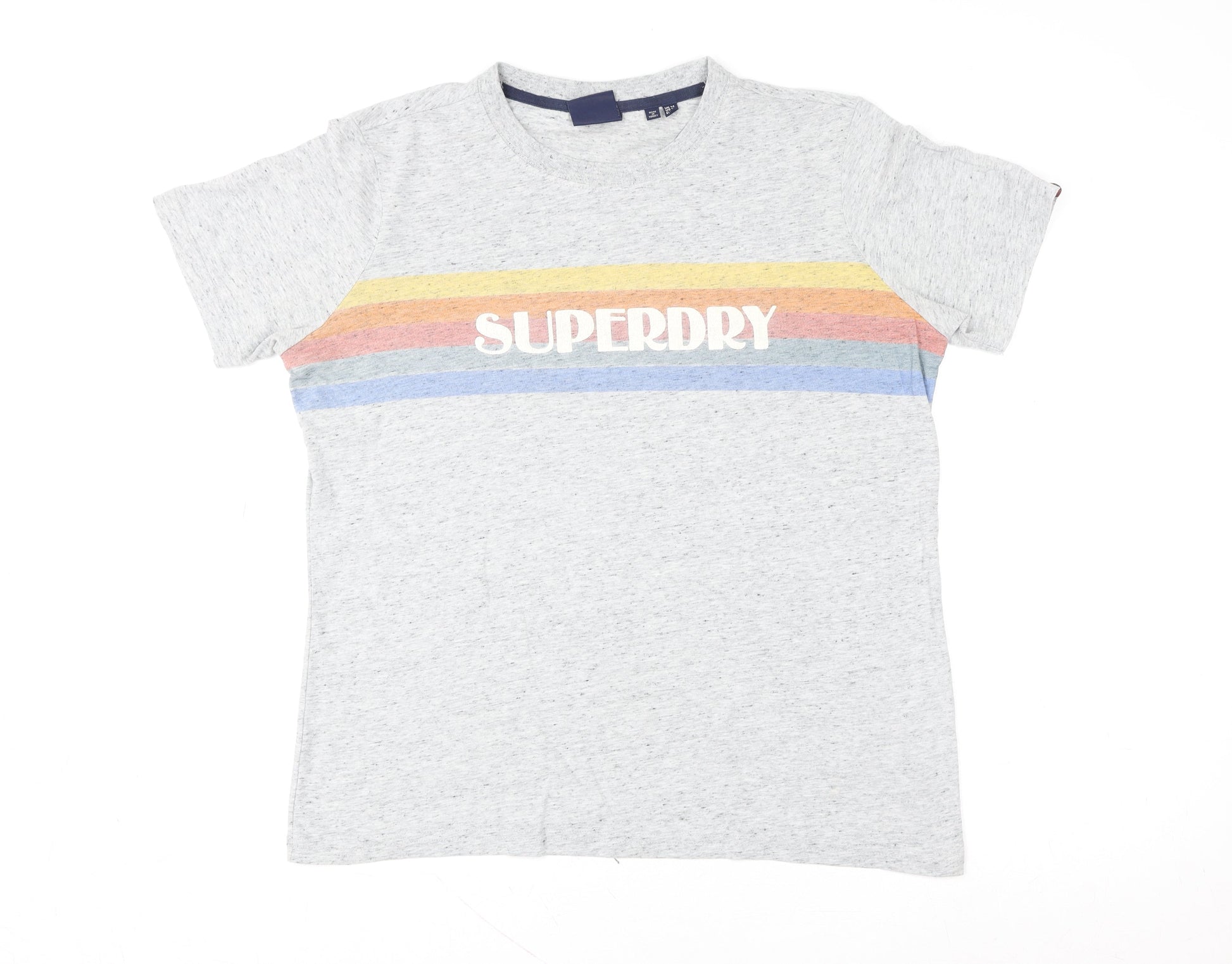 Superdry Men Grey Retro Stripe Logo Crew Neck Cotton T-Shirt L
