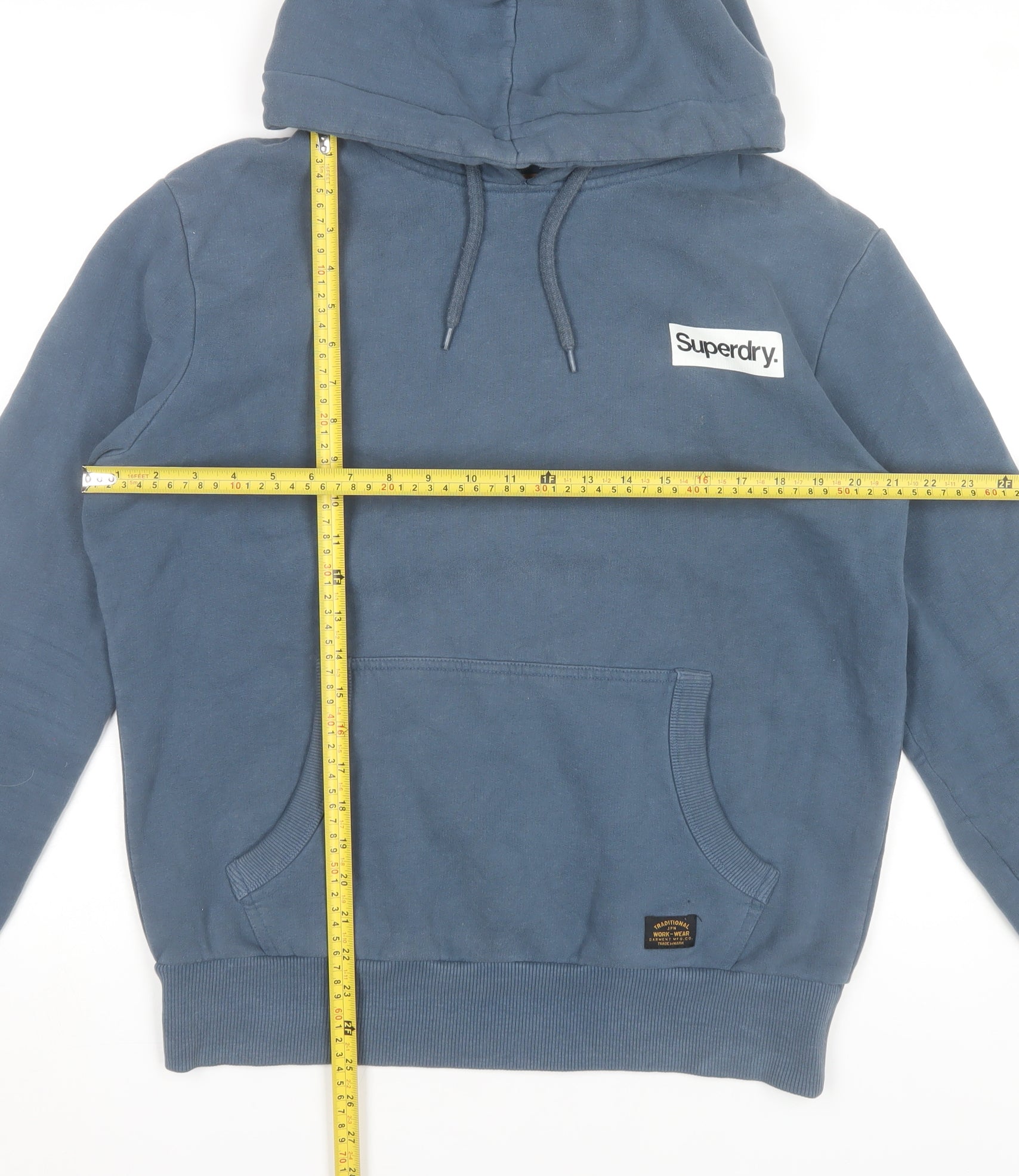 Superdry Men’s Blue Pullover Hoodie L Logo Pocket Casual
