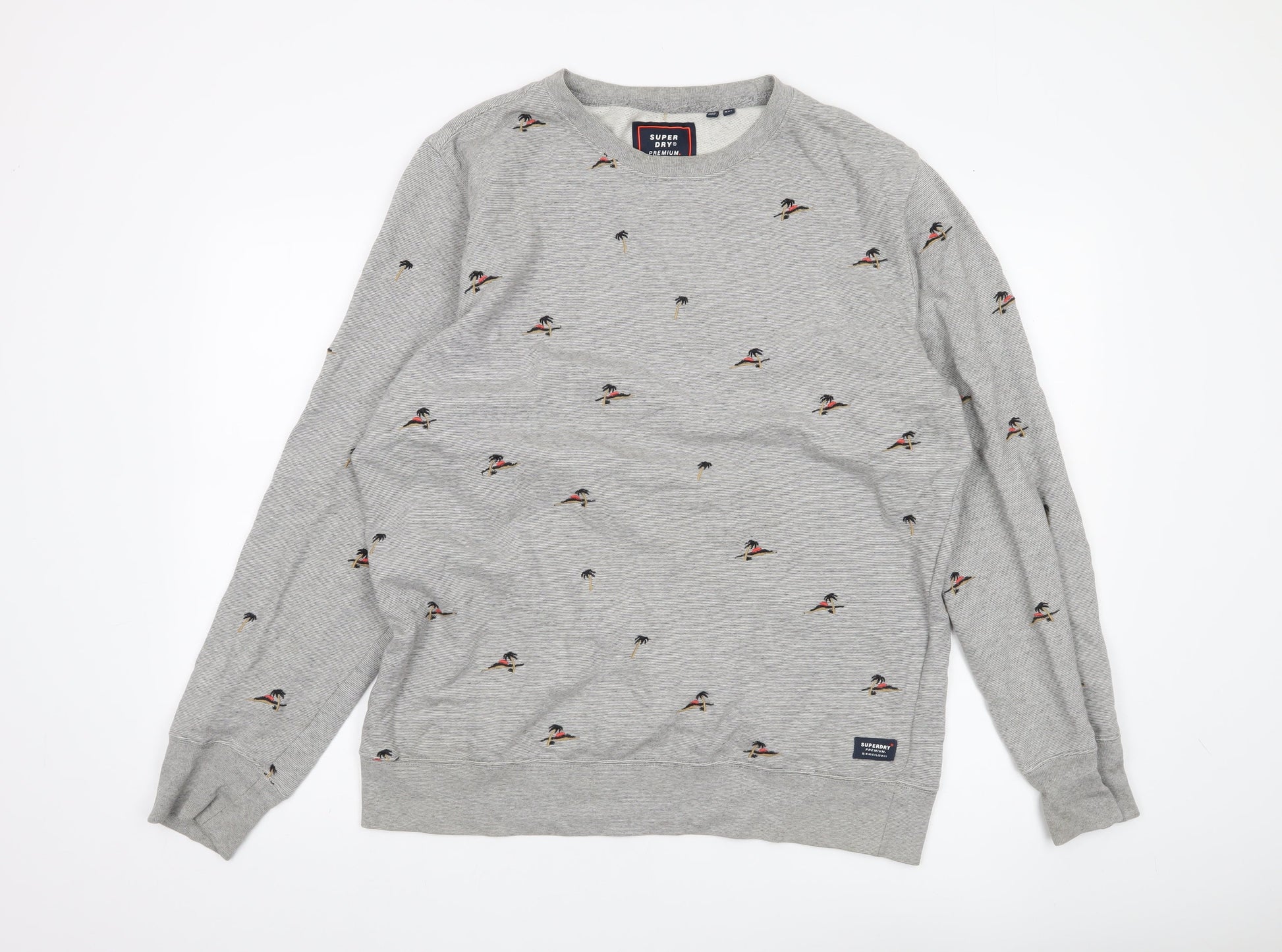 Superdry Men’s Grey 3XL Crew Neck Pullover Sweatshirt Embroidered