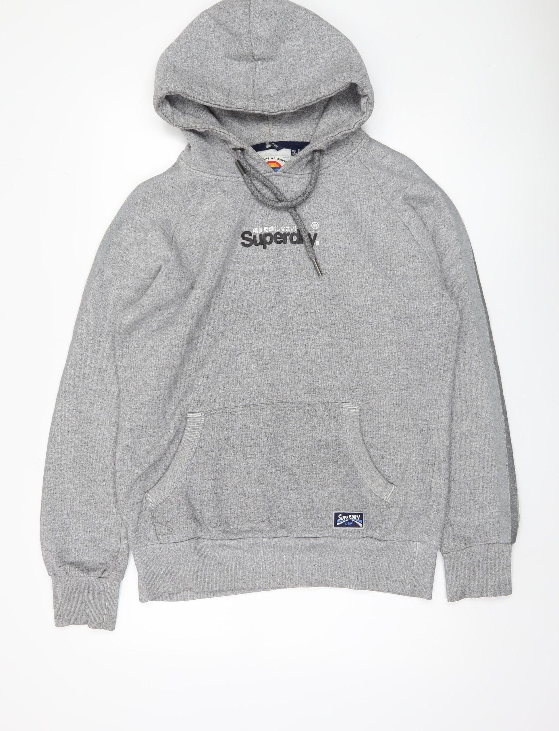 Superdry Men’s Grey Hoodie, L, Pullover Logo Design