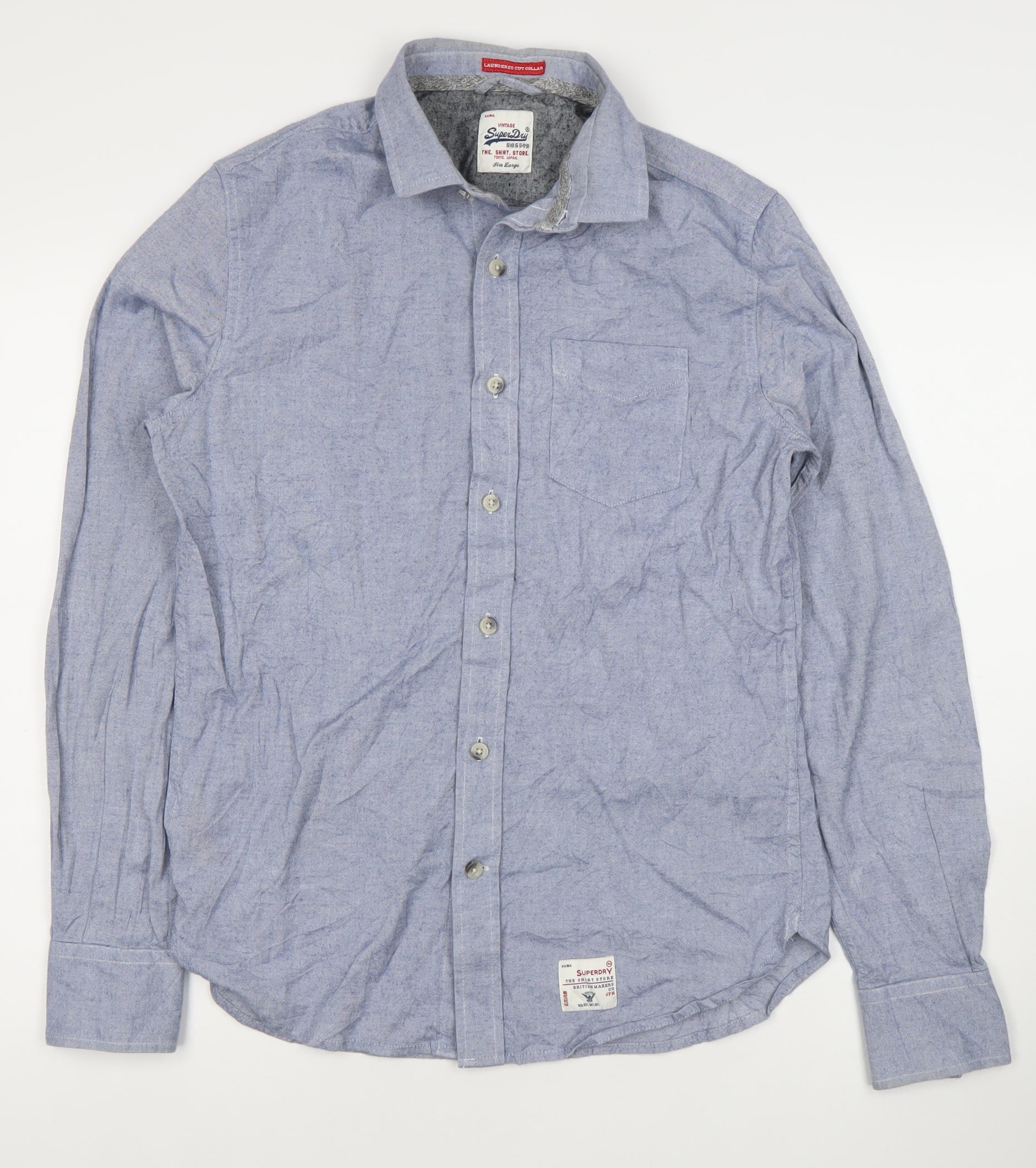 Superdry Men's Blue Long Sleeve Cotton Dress Shirt L Regular Woven