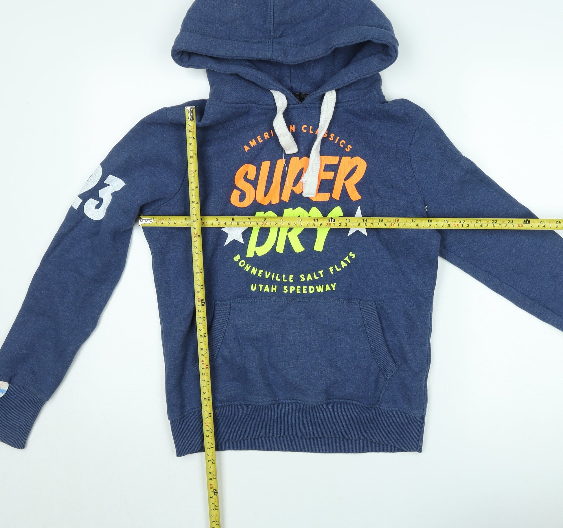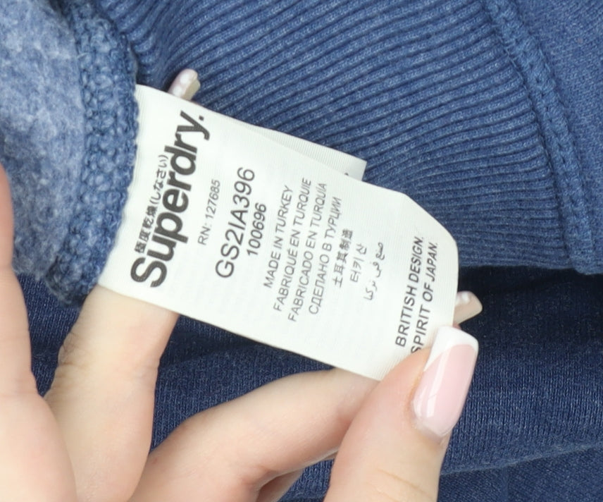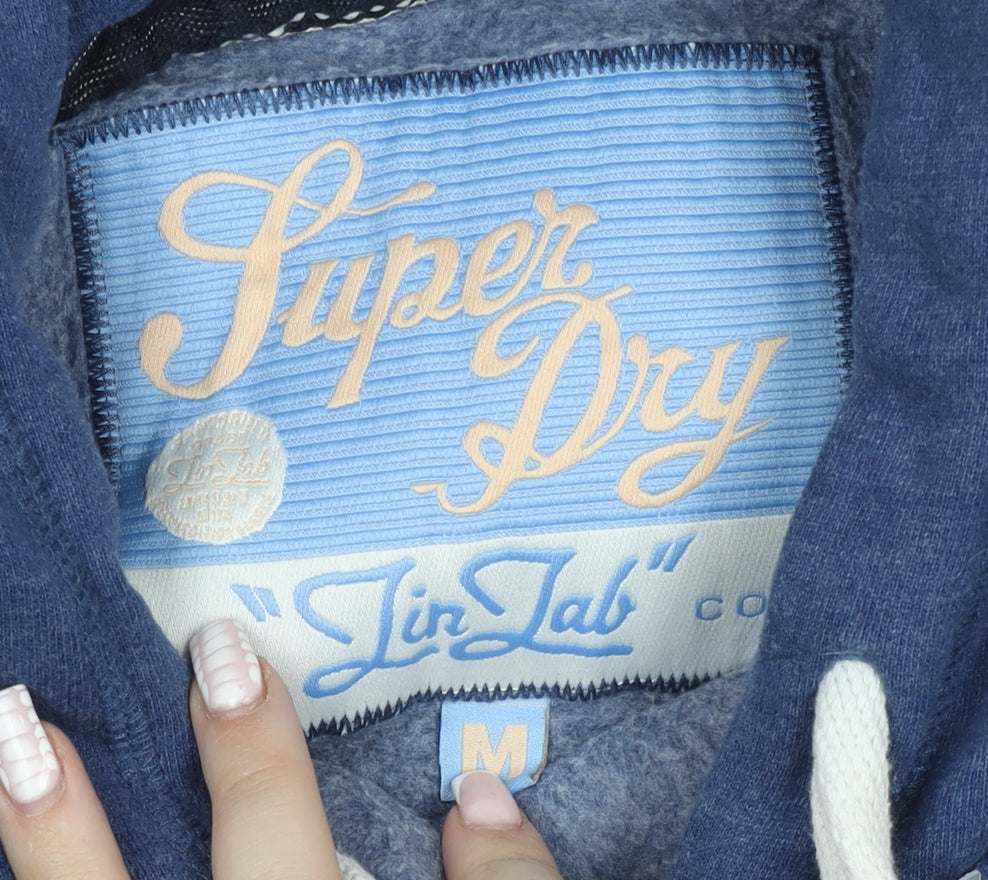 Superdry Mens Blue Pullover Hoodie M Graphic Fleece Sweatshirt