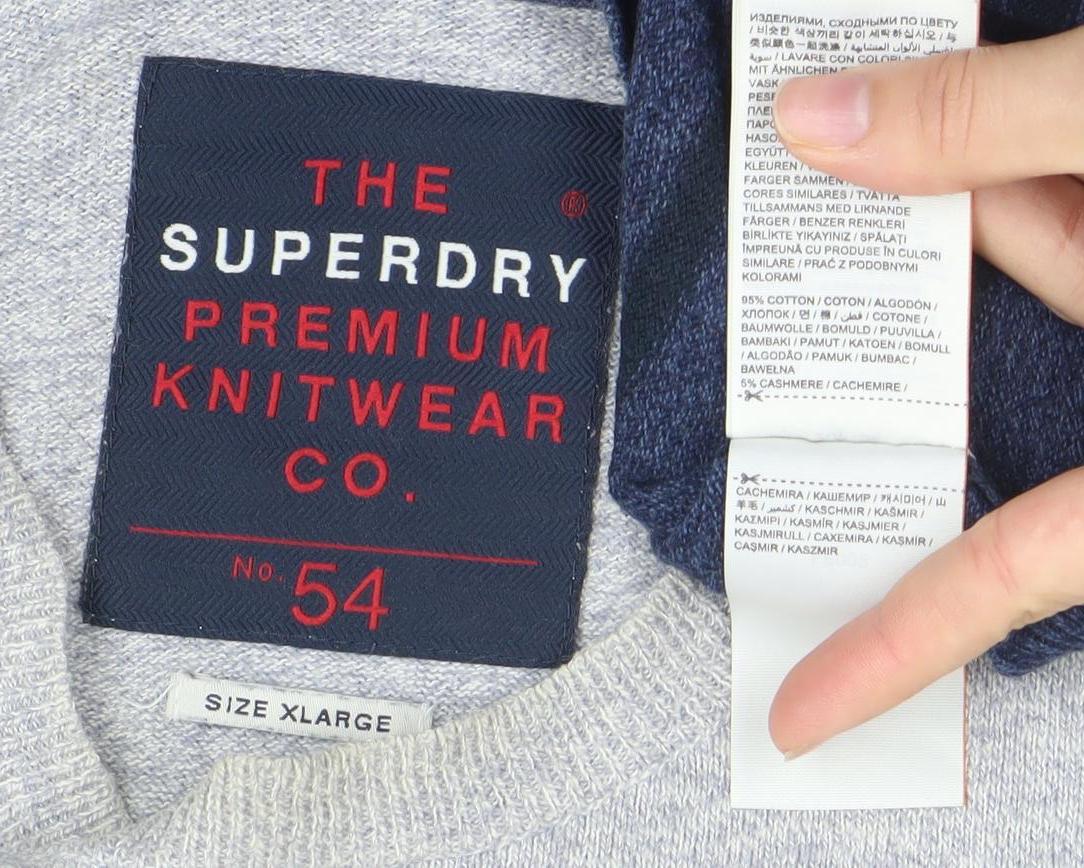 Superdry Men's Blue Striped Crew Neck Cotton Wool Blend Jumper XL