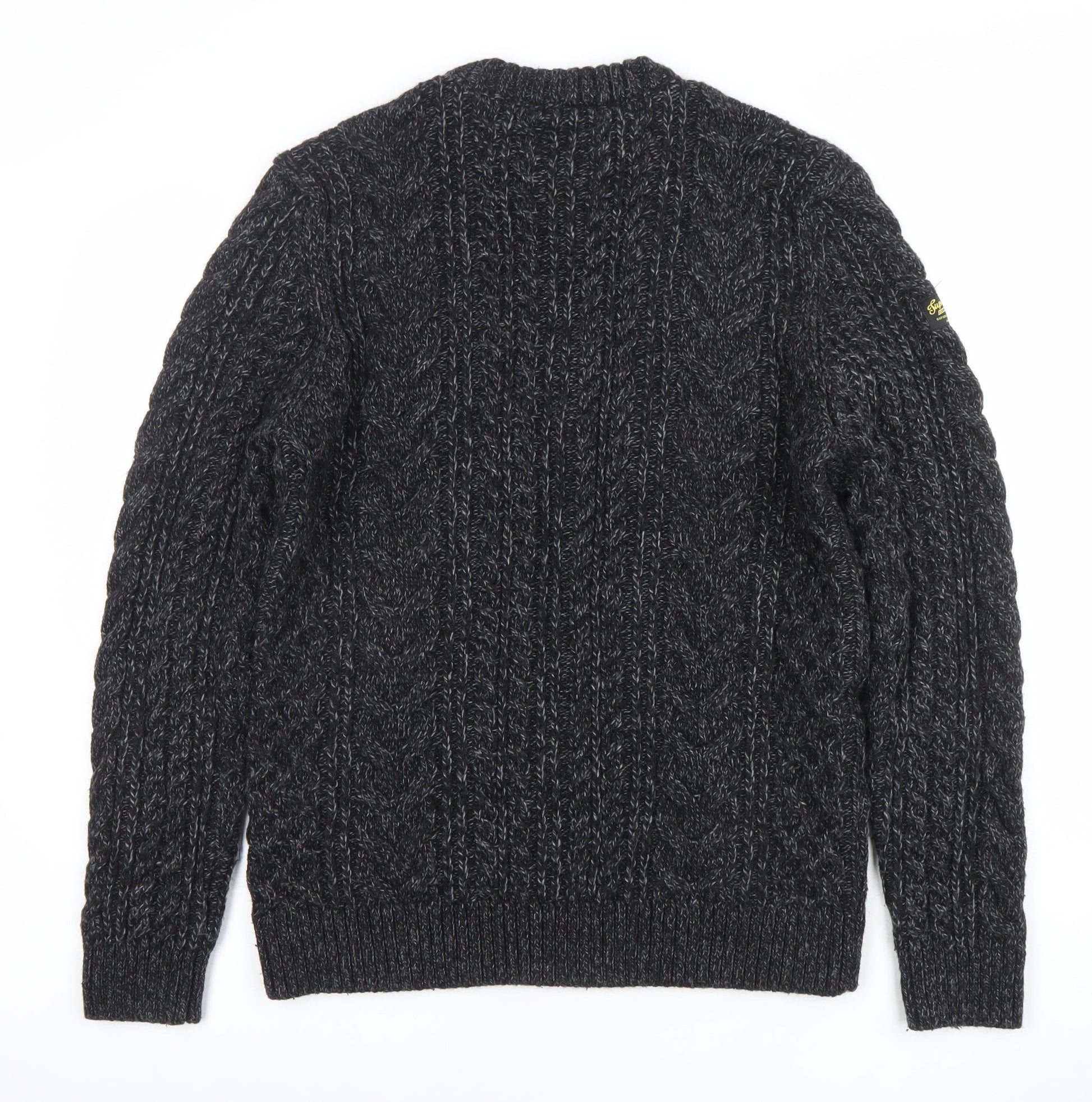 Superdry Men's Grey Cable-Knit Crew Neck Wool Jumper Size S