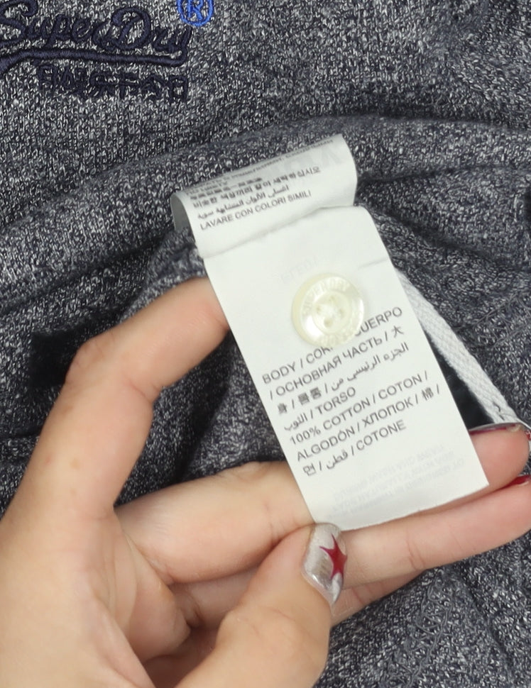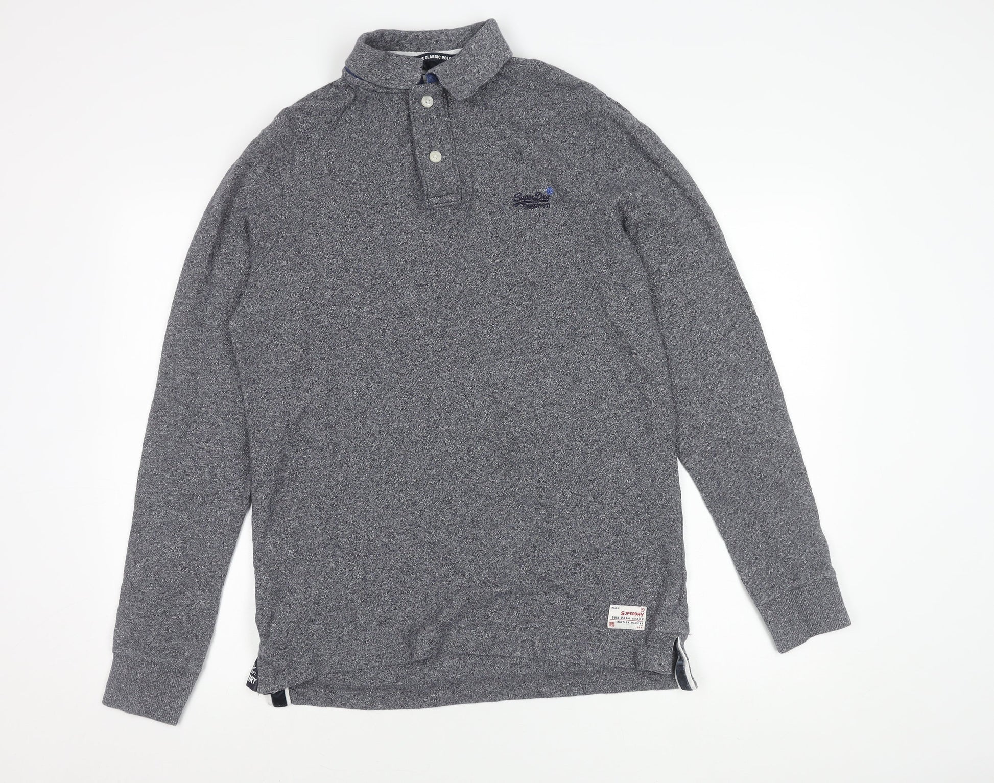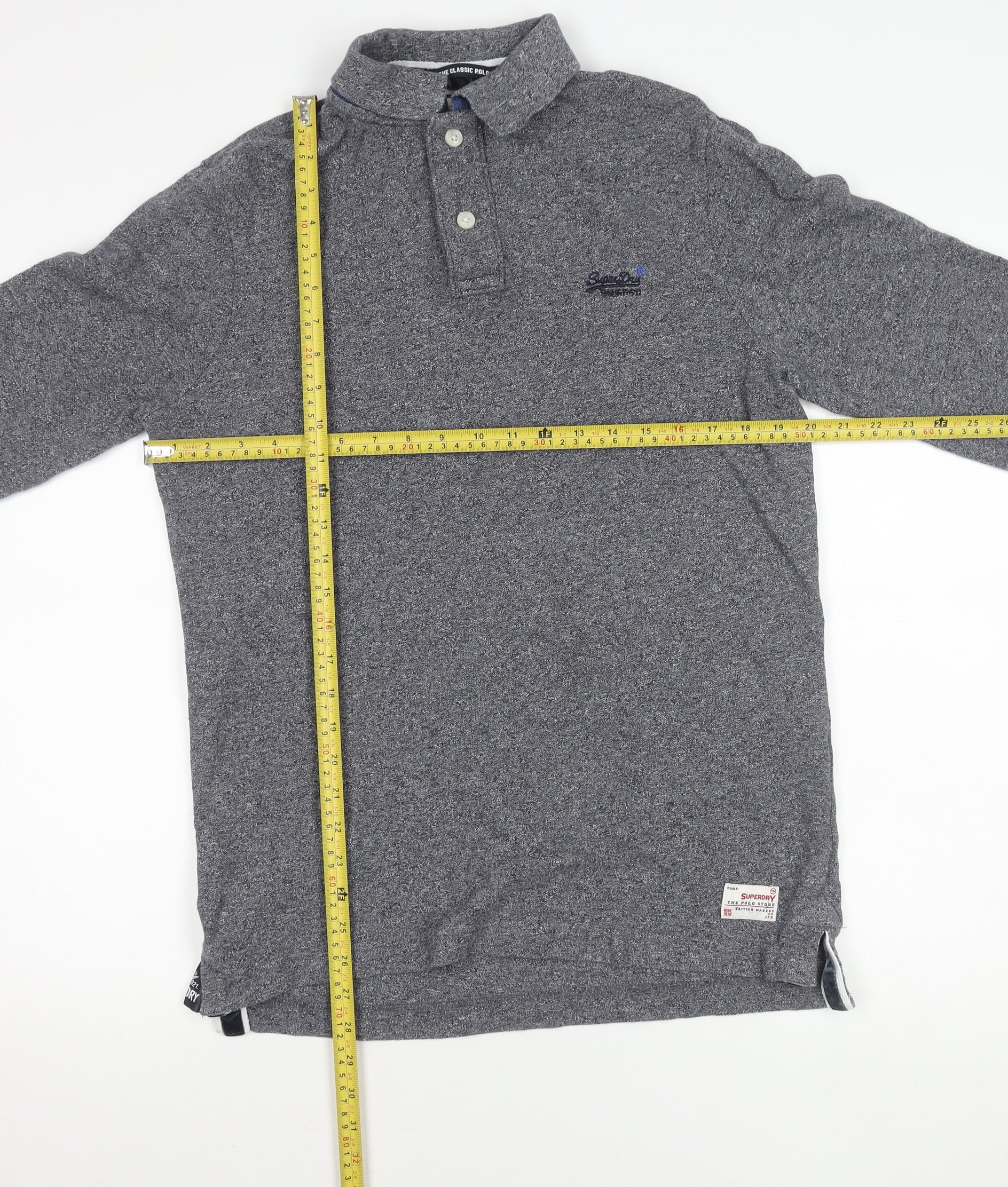 Superdry Mens Grey Classic Long Sleeve Polo Shirt Size L Cotton
